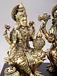 Seated Brass Lakshmi Ganesha Saraswati Idol on Singhasan
