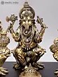 Set of 4" Small Brass Statues: Lakshmi, Ganesha, Saraswati with Floral Arch