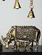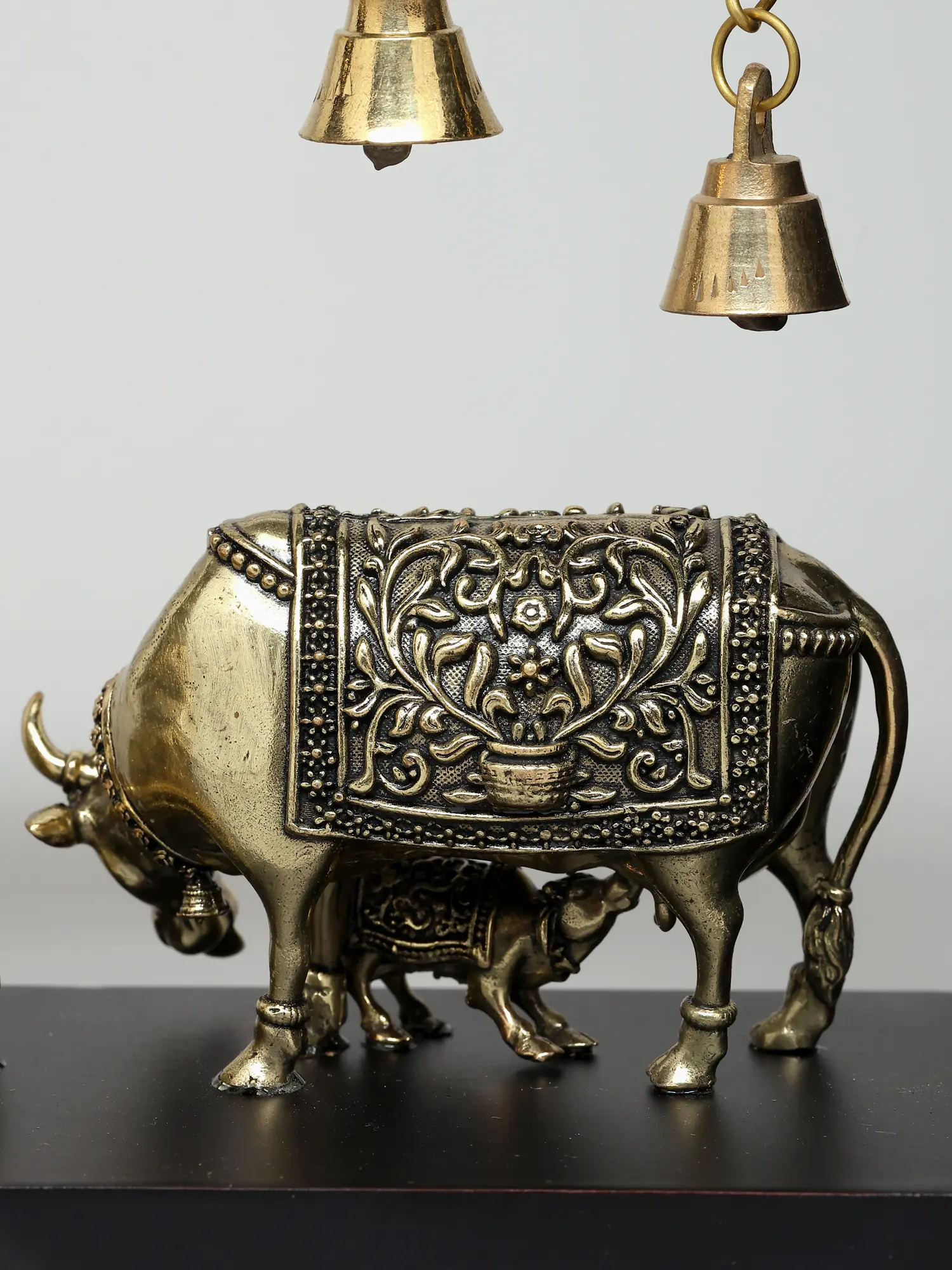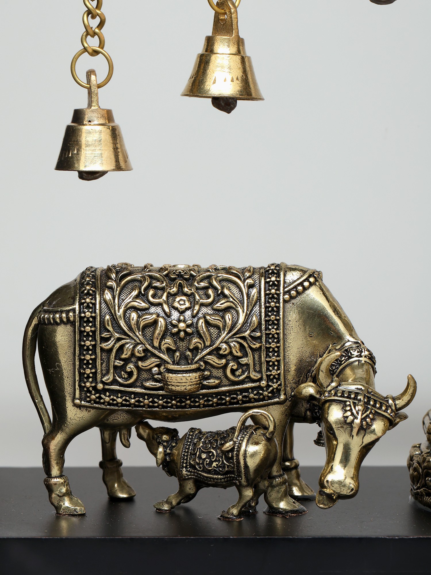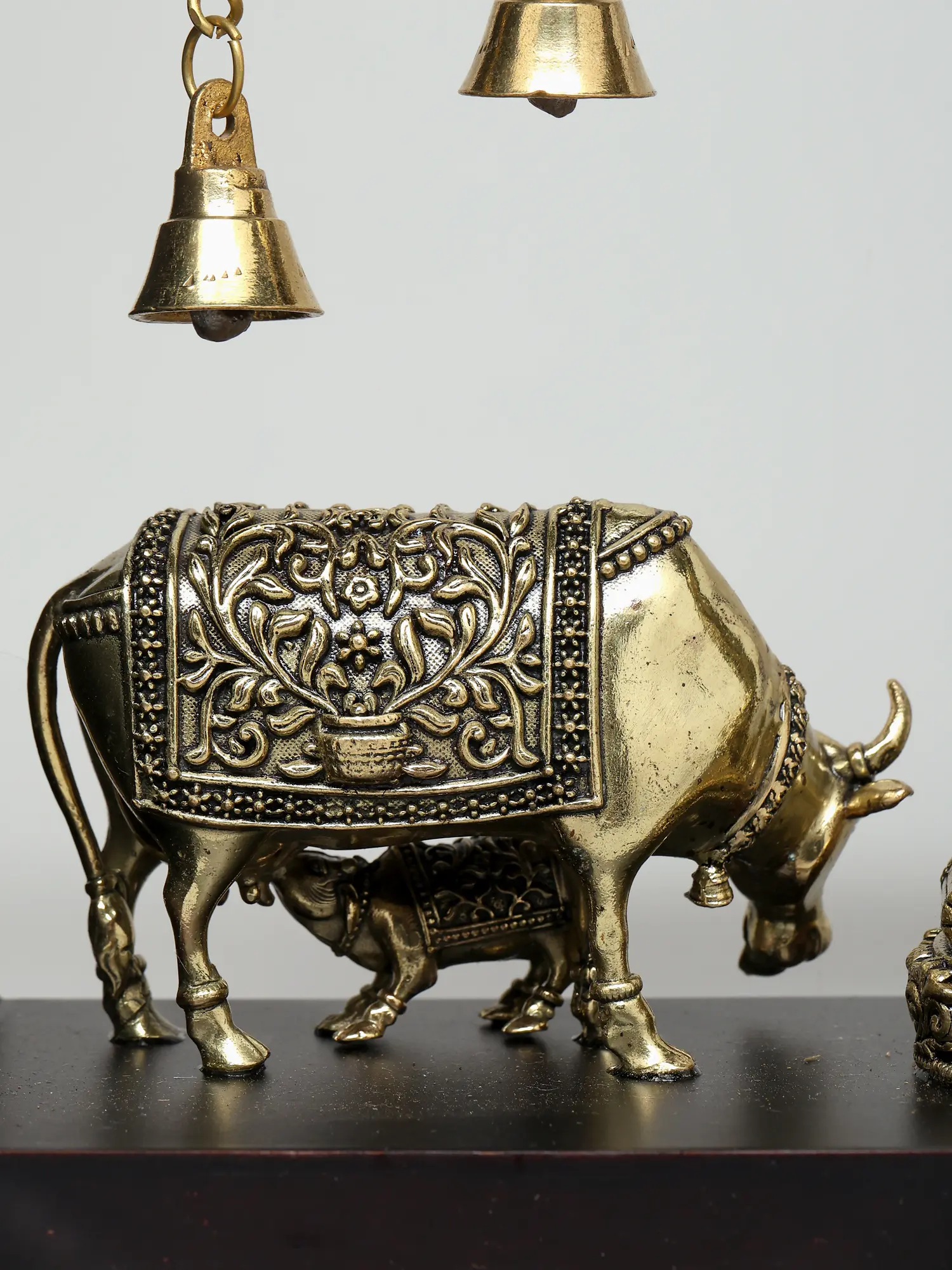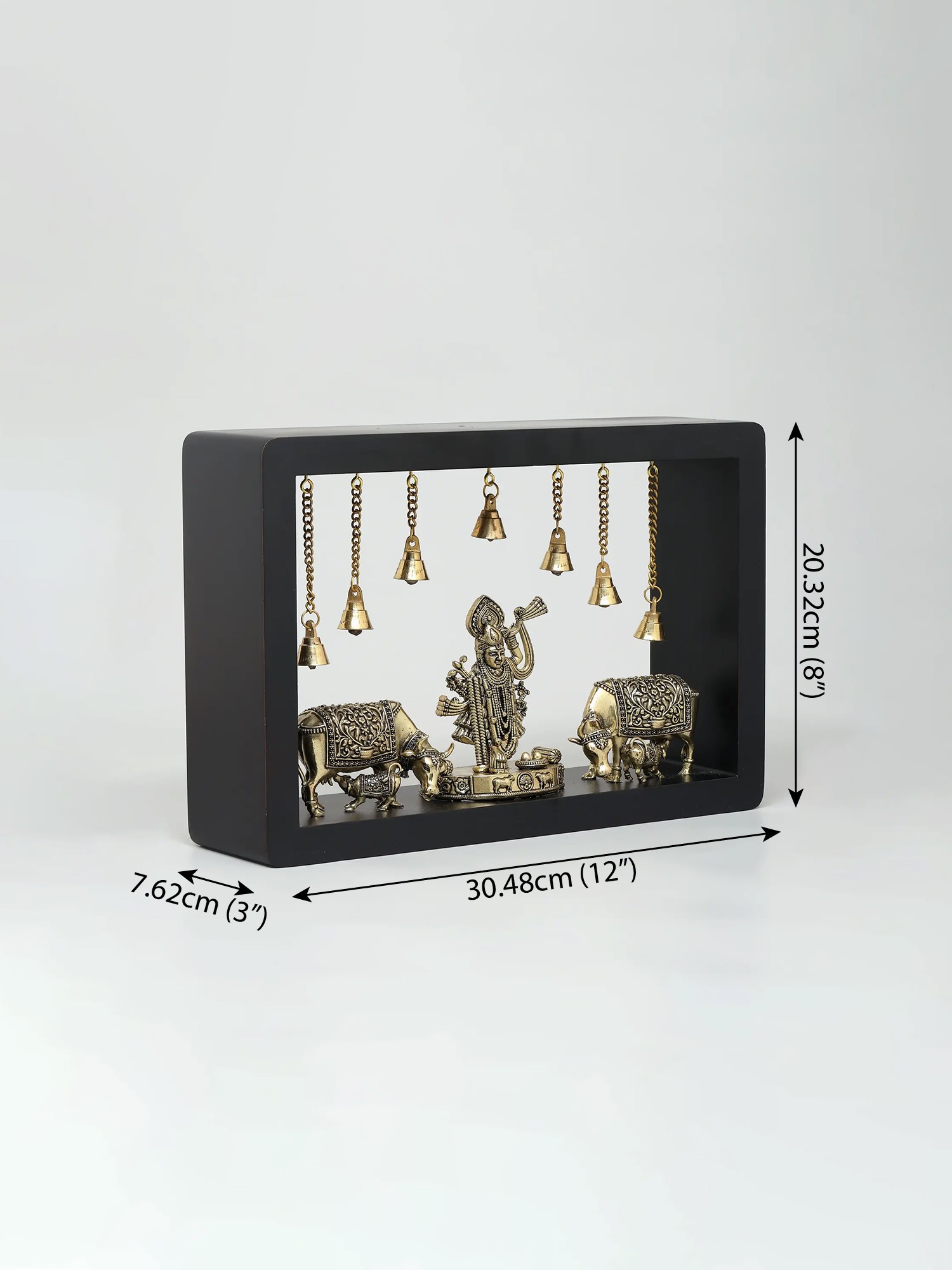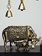 12" Superfine Sitting Lakshmi Ganesha with Dangling Bells | Wood Framed Brass Sculptures | Wall Hanging