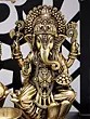 12" Chaturbhuja Lord Ganesha with Lamps and Bells | Brass Statue on Wood Base