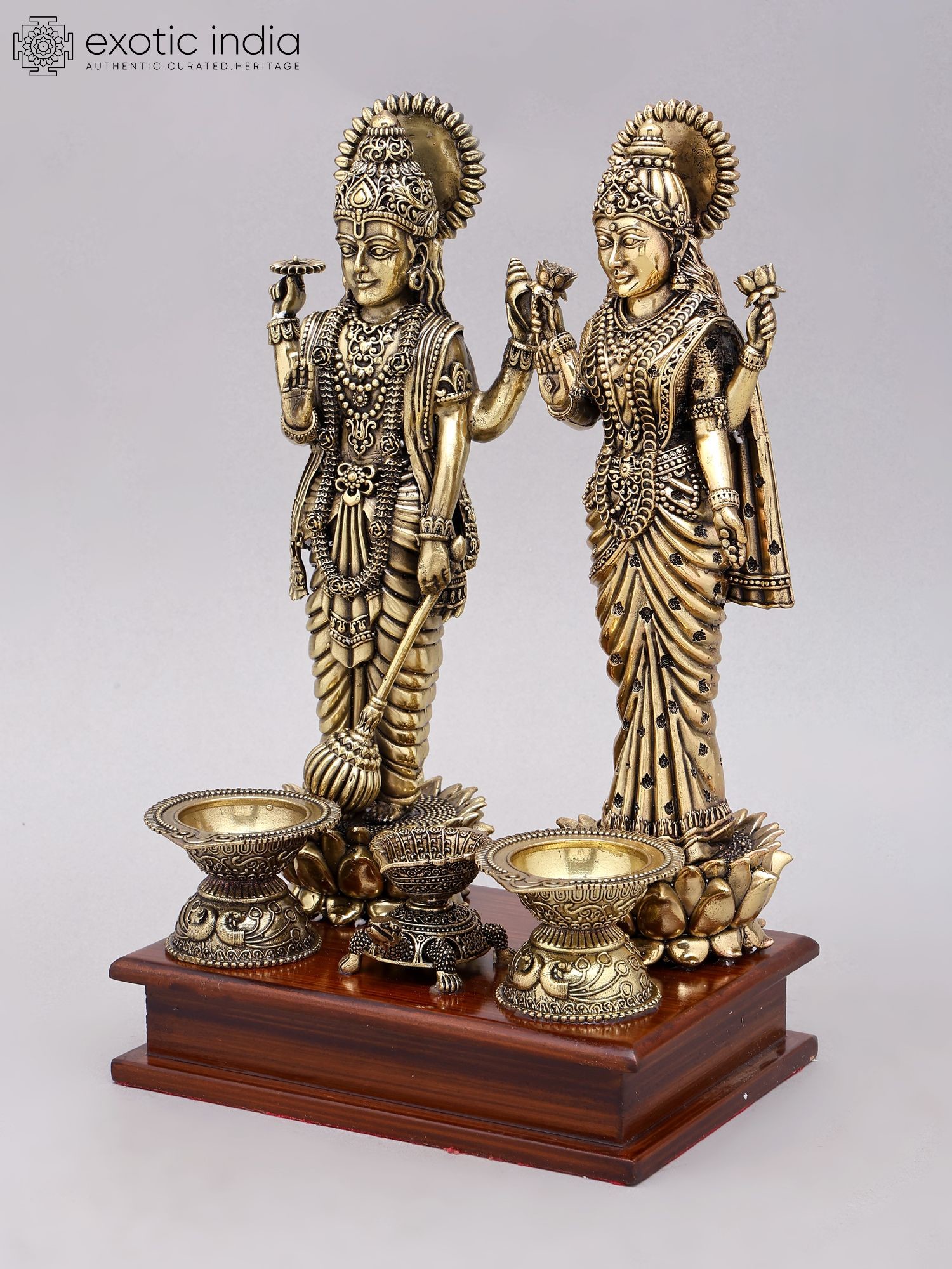 18" Lord Vishnu and Lakshmi Ji Inlay Work Brass Statue | Handmade
