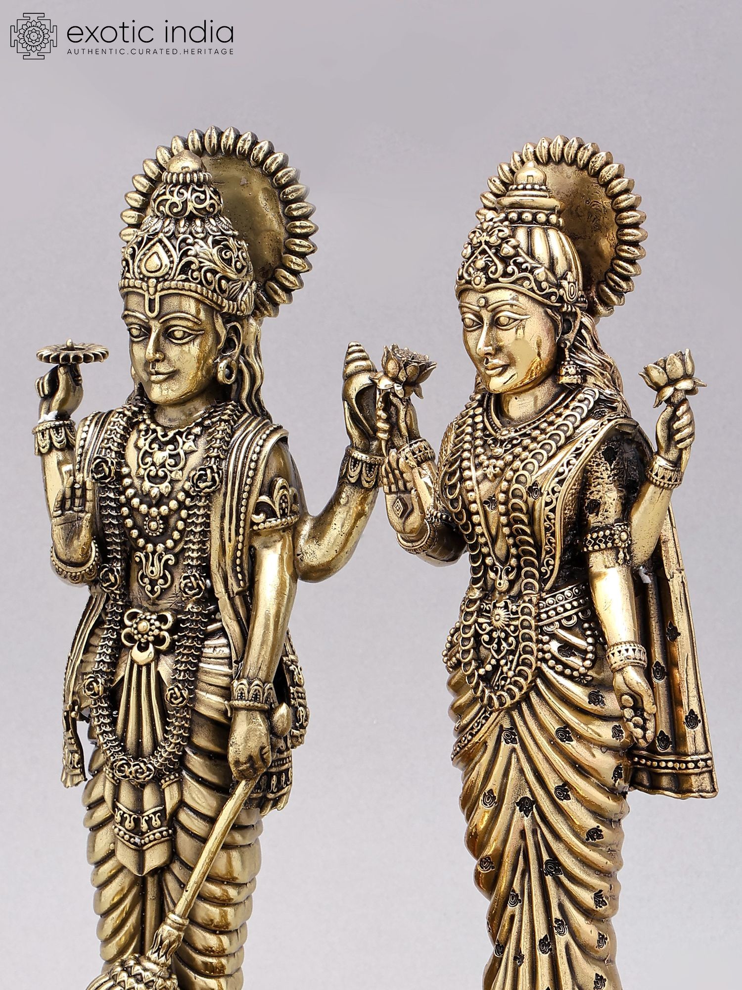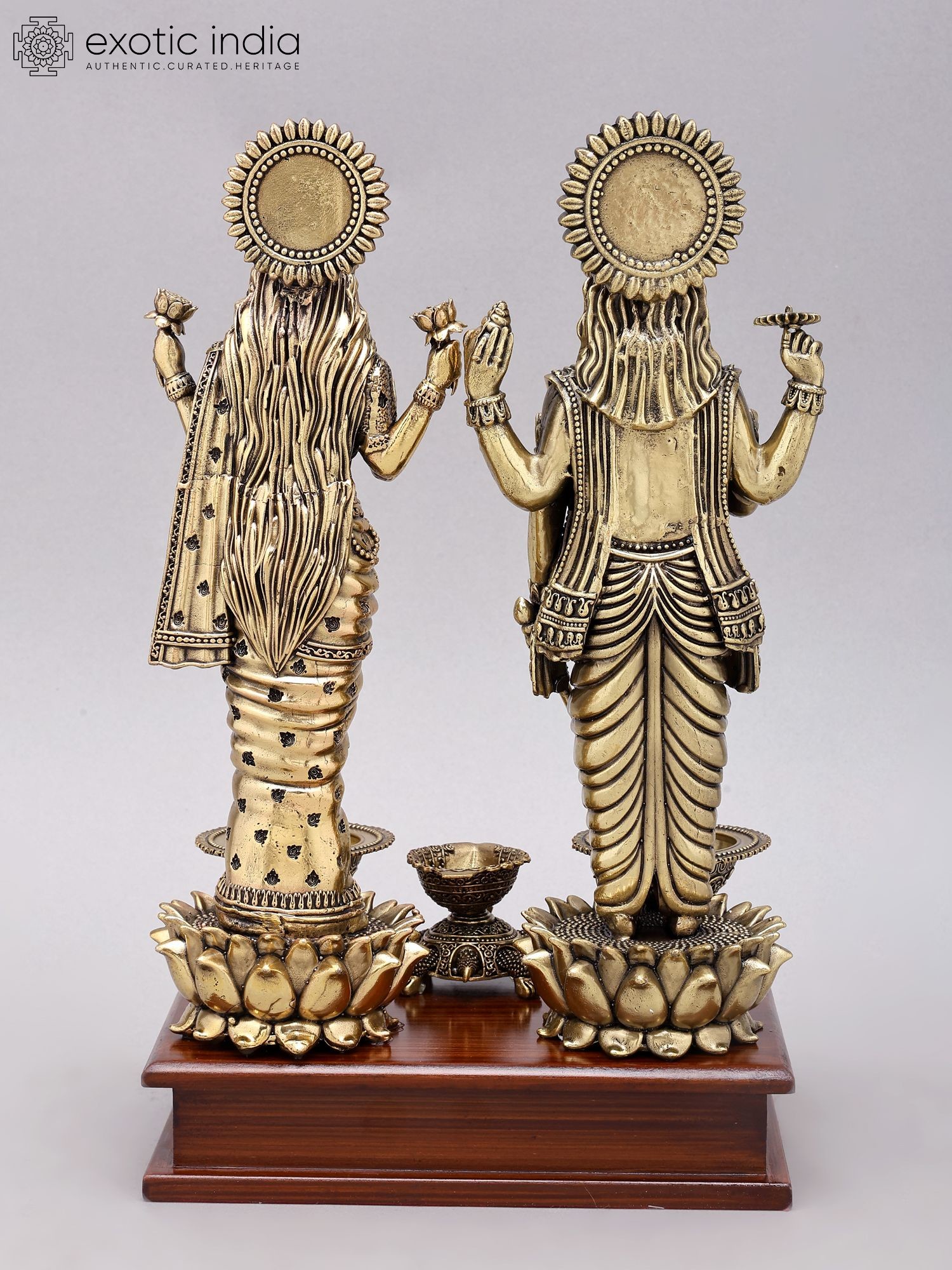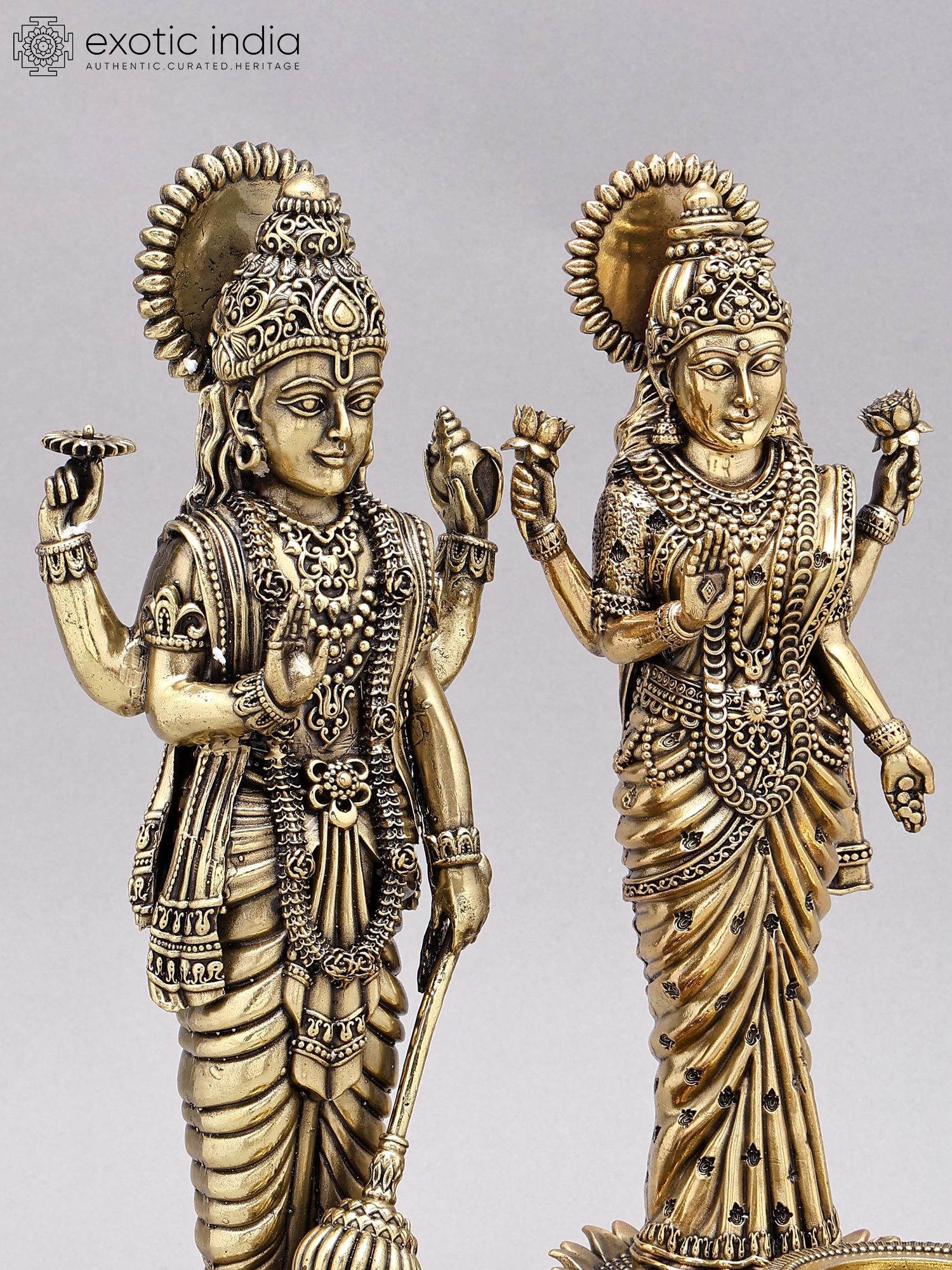 18" Standing Vishnu and Lakshmi on Upturned Lotus Blooms | Handmade Brass Statue
