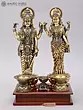 Brass Sculpture of Vishnu and Lakshmi in Blessing Pose with Inlay Work