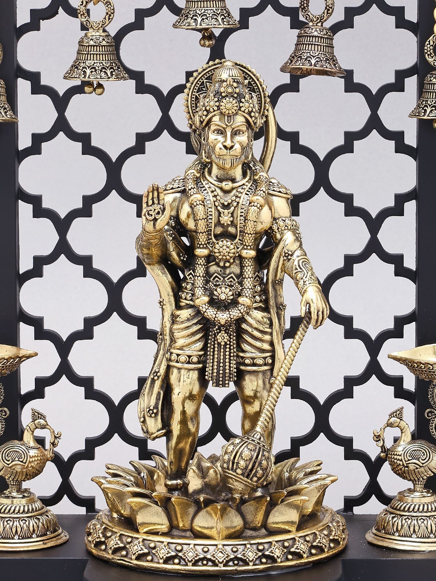 12" Divine Panchmukhi Hanuman with Hanging Temple Bells | Superfine Decorative Spiritual Shrine