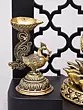 14" Four Armed Blessing Lord Ganesha with Peacock Lamps and Bells | Brass Statue with Designer Wood Frame