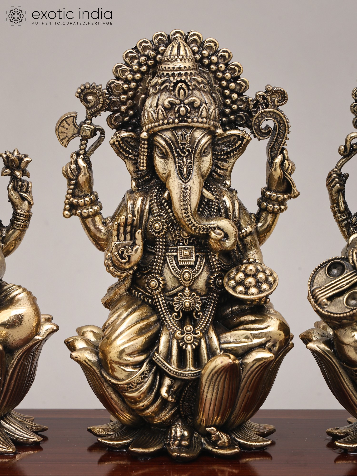 6" Lakshmi Ganesha Saraswati - Set of Three Statues in Brass | Handmade | Made In India