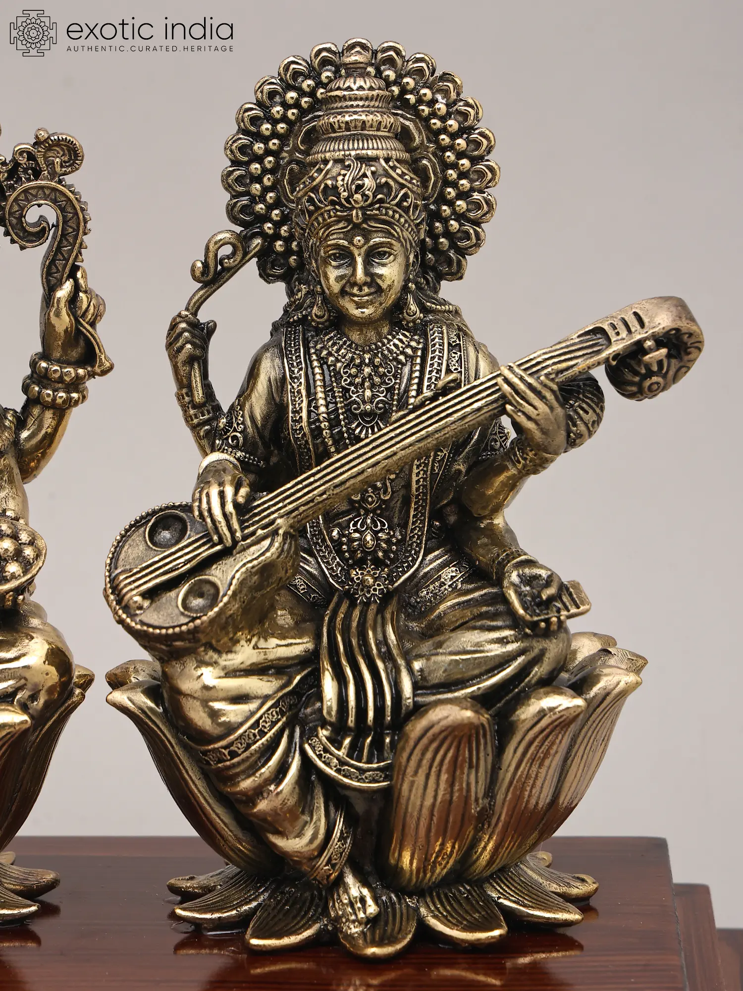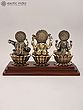 This unified depiction of Lakshmi, Ganesha, and Saraswati serves as a powerful symbol, invoking a holistic approach to life's aspirations. It is believed that by worshipping these three deities together, one can achieve a balanced life, marked by material prosperity, intellectual prowess, and spiritual fulfillment. The superfine brass casting showcases meticulous attention to detail, from the delicate expressions on the deities' faces to the intricate patterns adorning their garments and headdresses. The rich, warm tones of the brass, combined with the smooth finish of the wooden base, create a piece that is both visually captivating and spiritually resonant, making it an ideal addition to any home, office, or sacred space. This sculpture is more than an object; it is an invitation to embrace abundance, cultivate wisdom, and commence every journey with divine grace.