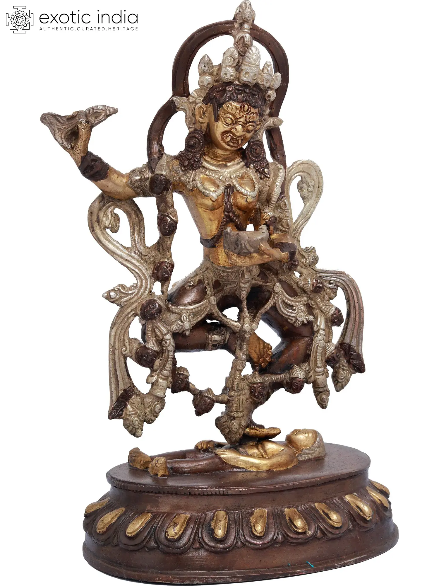 Crafted with an artistry that transcends the earthly realm, the brass statue of Vajra Dakini emerges as a breathtaking masterpiece within the tapestry of Tibetan Buddhism. Vajra Dakini, the embodiment of enlightened female energy, graces us with her presence, delicately holding the vajra, a symbol of her profound connection to the celestial thunderbolt of enlightenment. This exquisite sculpture weaves intricate details into her divine form, mesmerizing the beholder with the depth of her spiritual power and grace. Within its artistry, this statue serves not only as a testament to the craftsmanship but also as a portal to the spiritual realm, inviting devotion and reverence for the blessings and guidance of Vajra Dakini on the path to enlightenment.