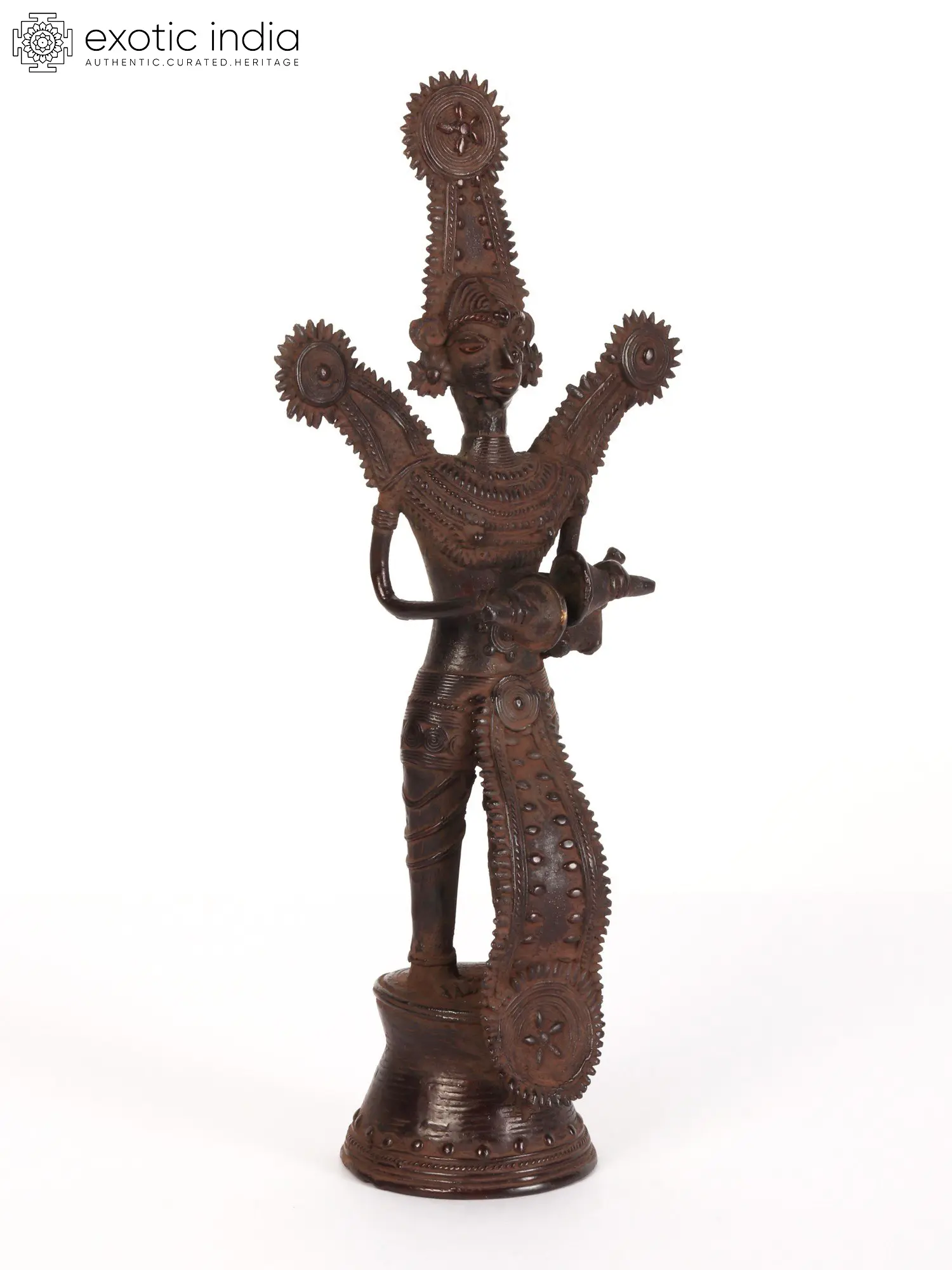 11" Brass Goddess Mahishasura Mardini (Tribal Dhokra Art)