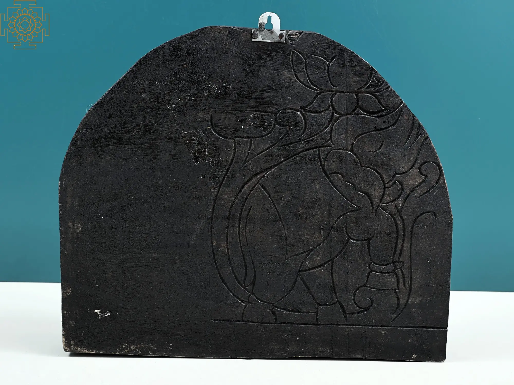 12" Wooden Seated Four Handed Lord Ganesha in Abhay Mudra | Wall Hanging | Handmade
