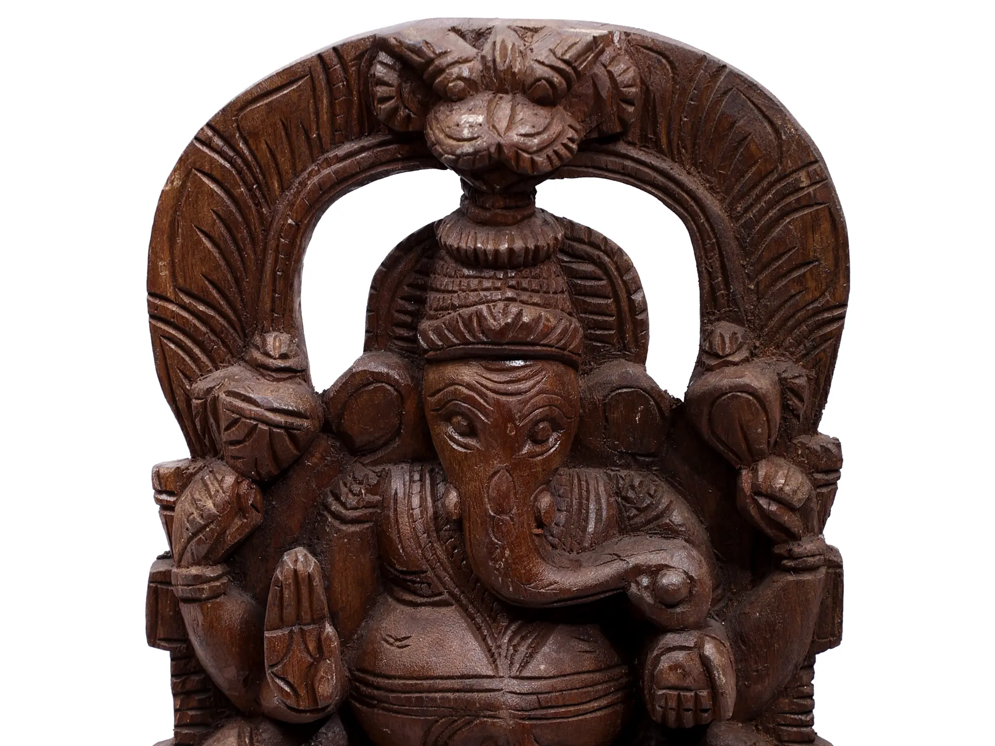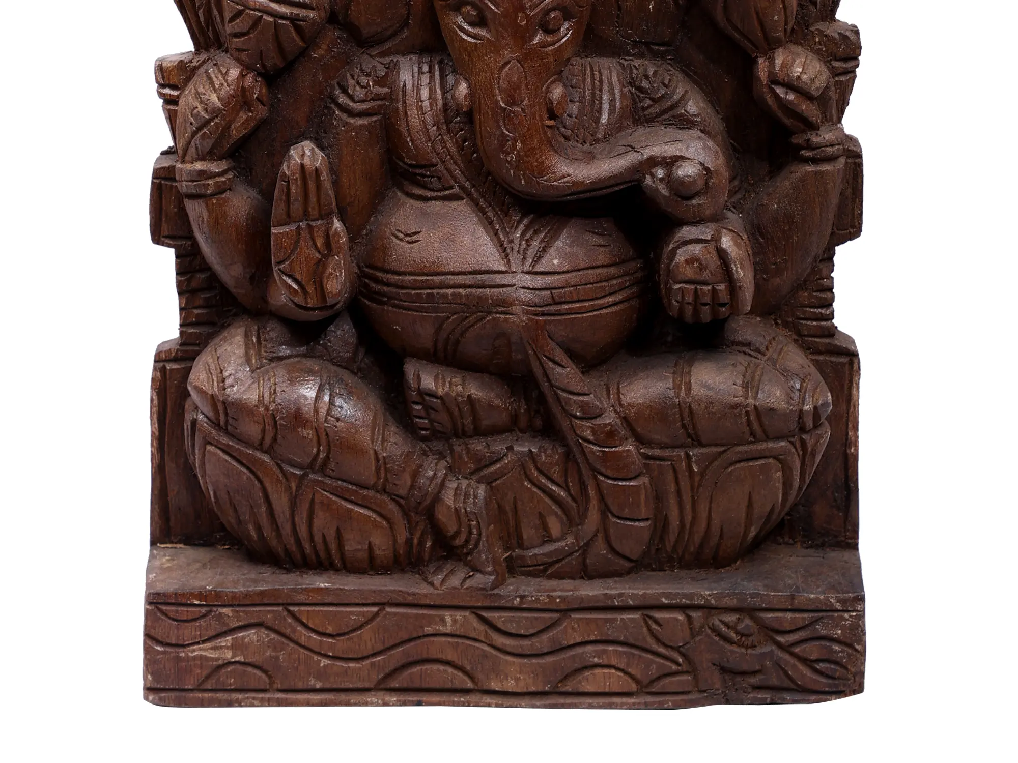 Lord Ganesha’s form itself is replete with symbolism. His elephant head signifies wisdom, intelligence, and the ability to overcome challenges with strength and grace. His large ears symbolize the importance of listening attentively, his trunk represents adaptability and strength, and his single tusk, broken in his battle, signifies the ability to overcome duality and the imperfections of the material world. The sweets he often holds, like the Modak, represent the fruits of spiritual practice and the sweetness of self-realization. This wooden rendition, with its tactile quality and natural beauty, serves as a tangible reminder of these profound spiritual principles, encouraging contemplation and a deeper connection with the divine. Display this beautiful carving in your pooja room, living space, or office to invite blessings of wisdom, success, and prosperity.
