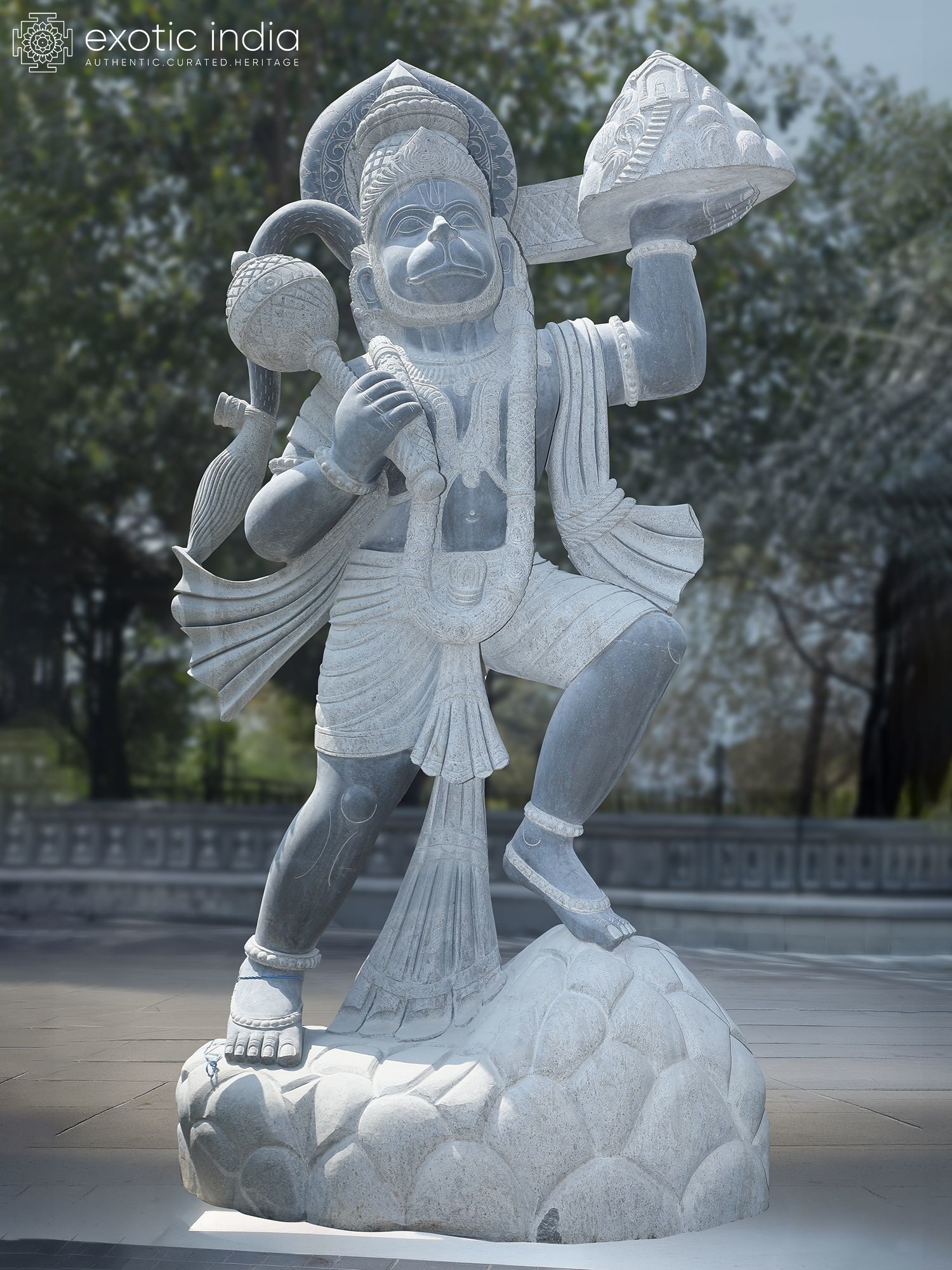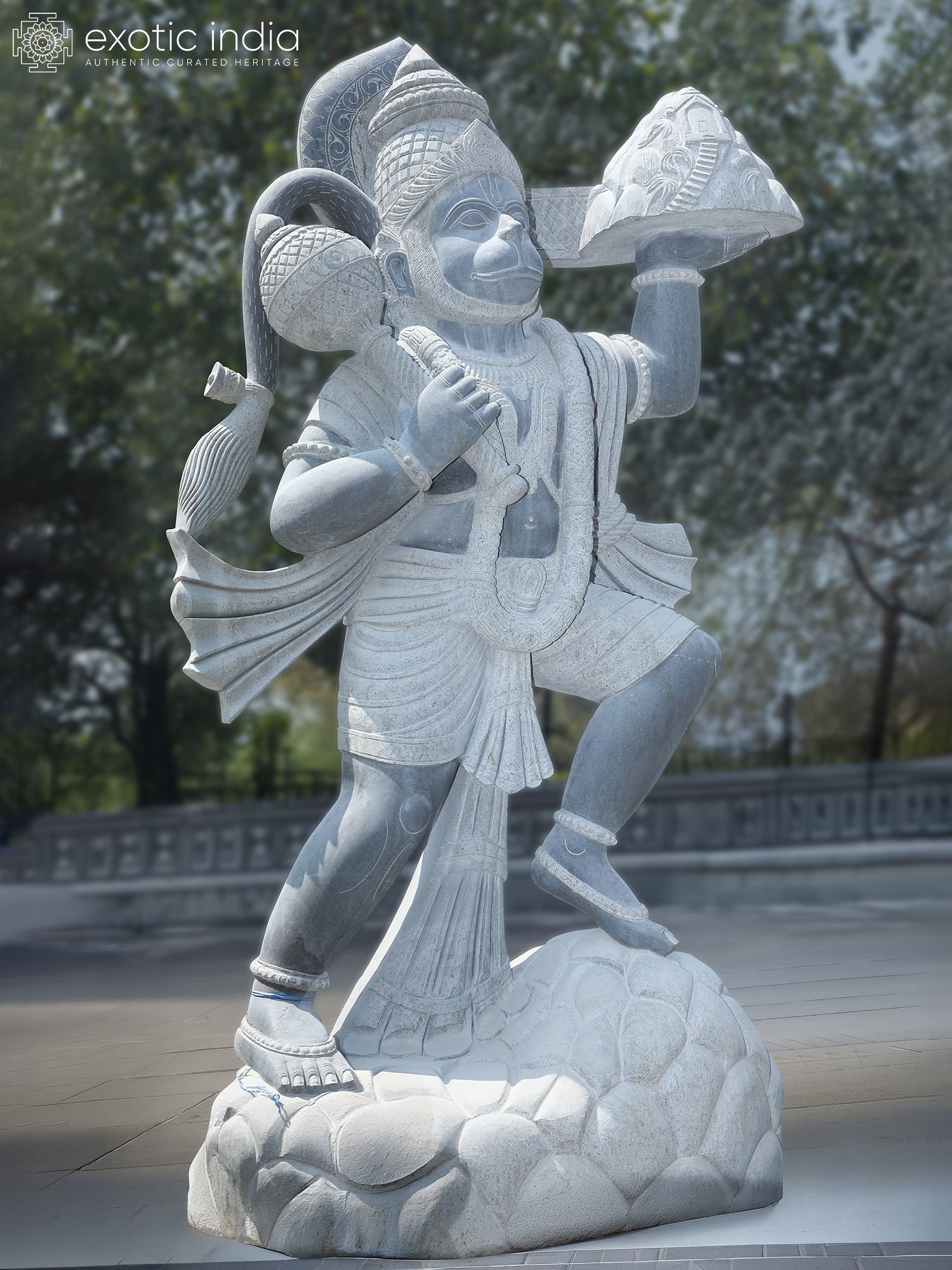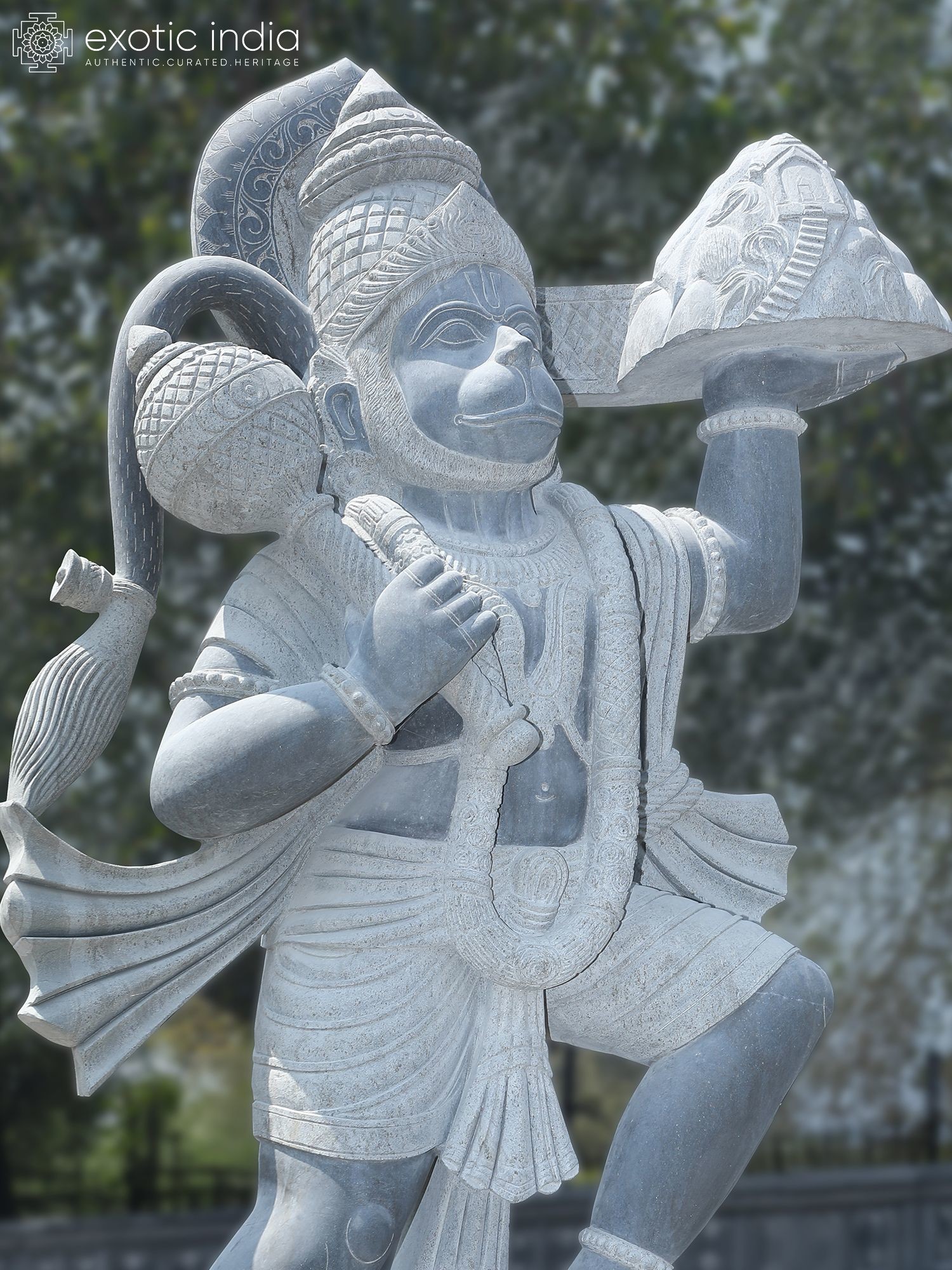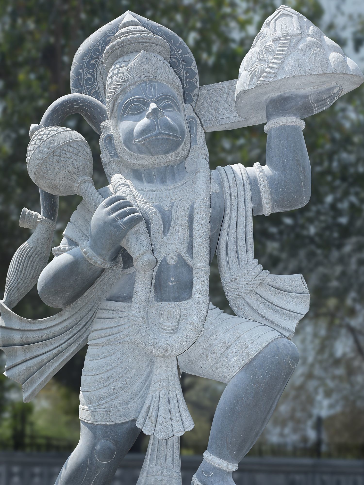 Intricately carved details showcase the dynamism and strength of Hanuman.