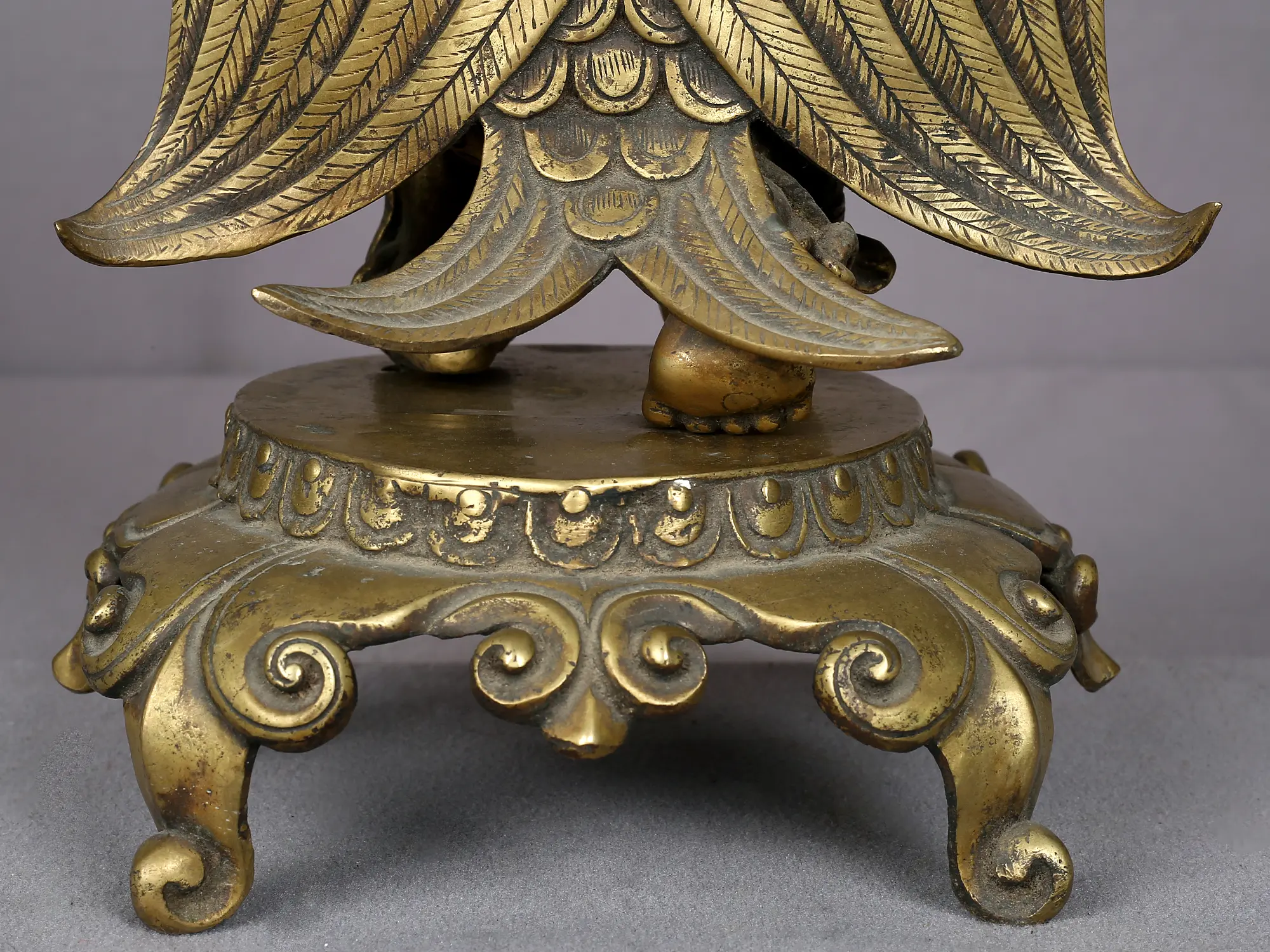 Garuda's awe-inspiring physical presence adds to his mystique, characterized by his colossal size, radiant aura, and majestic wings that span wide. He is portrayed with a resplendent golden body adorned with divine jewels and ornaments, Garuda's wings symbolize his ability to traverse effortlessly between realms, as a protector against malevolent forces, ailments, and negative influences, Garuda is venerated for bestowing courage, strength, and fearlessness upon those who seek his blessings. In certain regions, Garuda is honored independently, and grand temples are erected in his reverence.