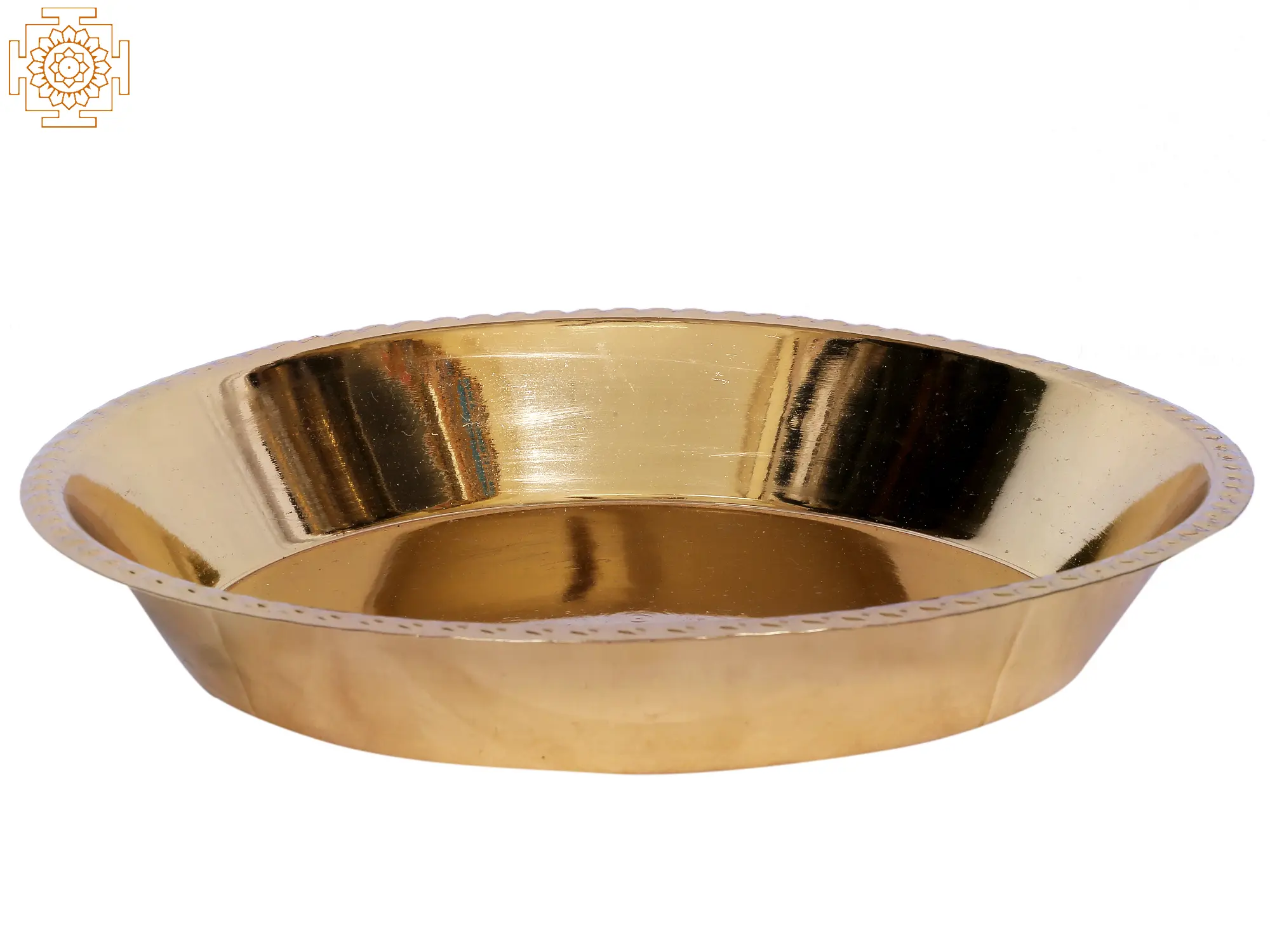 This Puja Parata made of brass is a plate used in Hindu rituals for serving flowers and Bhoga to the deities. It comes with a very simplistic design with just dotted designs on the ring of the mouth. It is believed that brass metal has an anti-bacterial material hence considered one of the sacred metals. This brass plate when used for serving food to the gods and goddesses infuses the goodness of the brass metal into the food and makes it sacred and ready to be served to the deities.