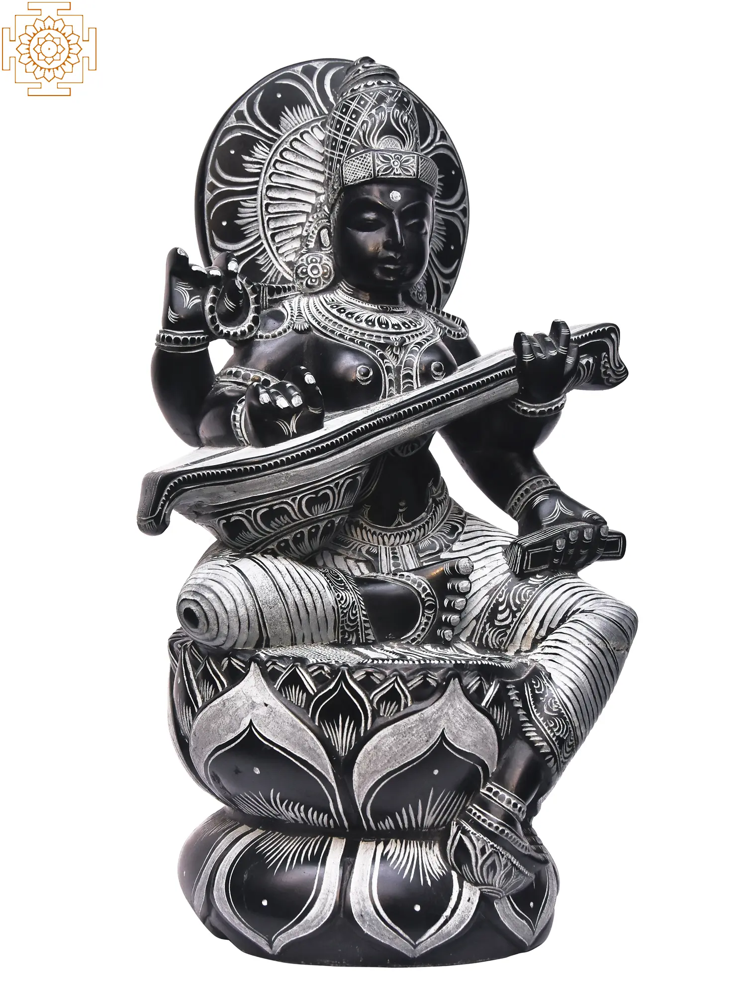 8" Goddess Saraswati Standing with Veena | Orissa Stone Statue | Hand Carved