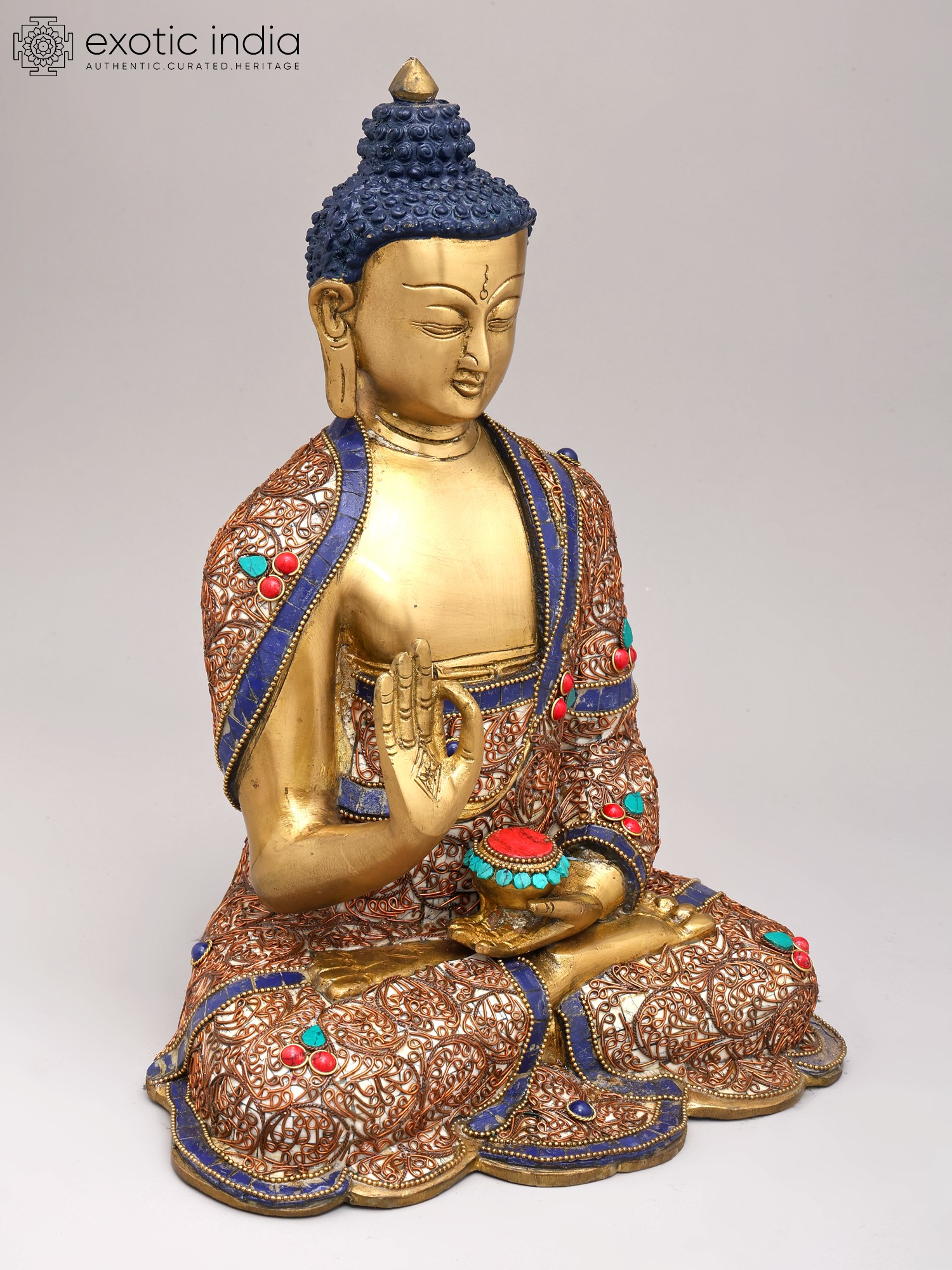 13" Gautam Buddha Preaching His Dharma With Inlay Work In Brass | Handmade | Made In India