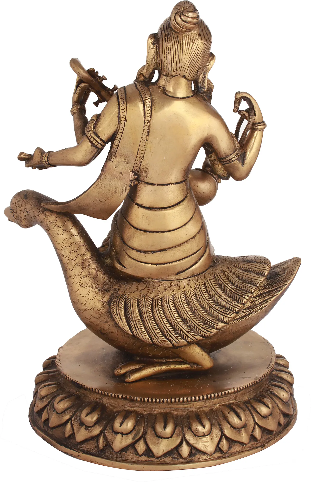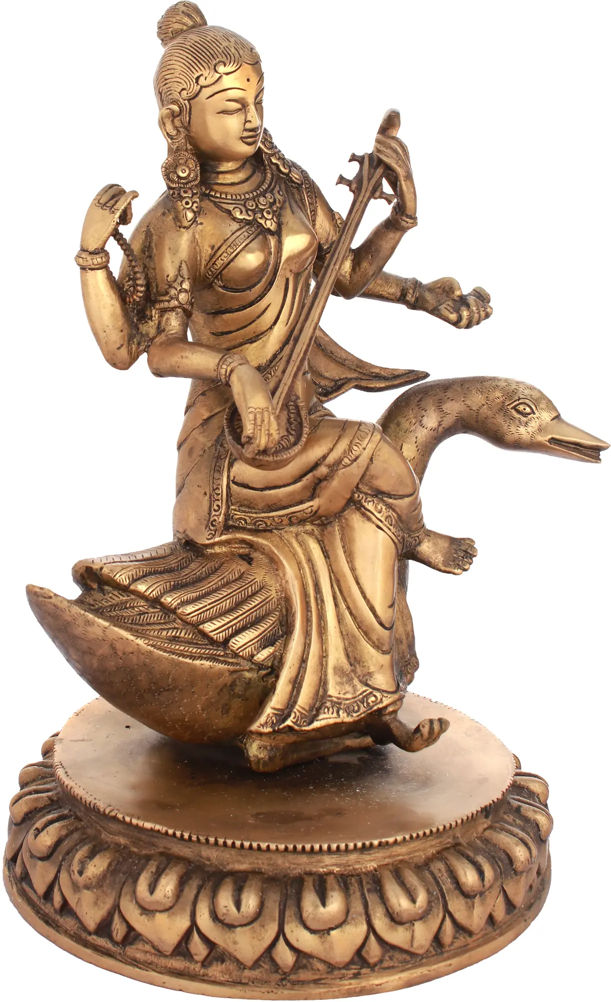 Enhance your spiritual and intellectual pursuits with this exquisite handmade brass statue of Goddess Saraswati. In Hindu philosophy, Saraswati is the embodiment of knowledge, art, and music. This beautifully crafted piece captures the essence of her grace and wisdom, making it a perfect addition to your study or creative space. Allow her presence to inspire your quest for knowledge and creativity.