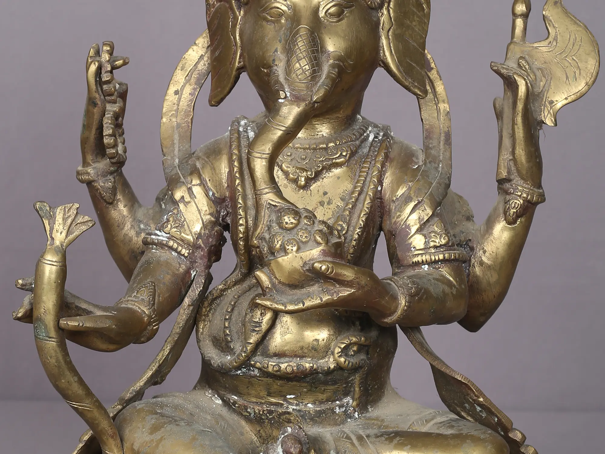 13" Little Ganesha Idol Eating Modak from Nepal | Nepalese Brass Statue