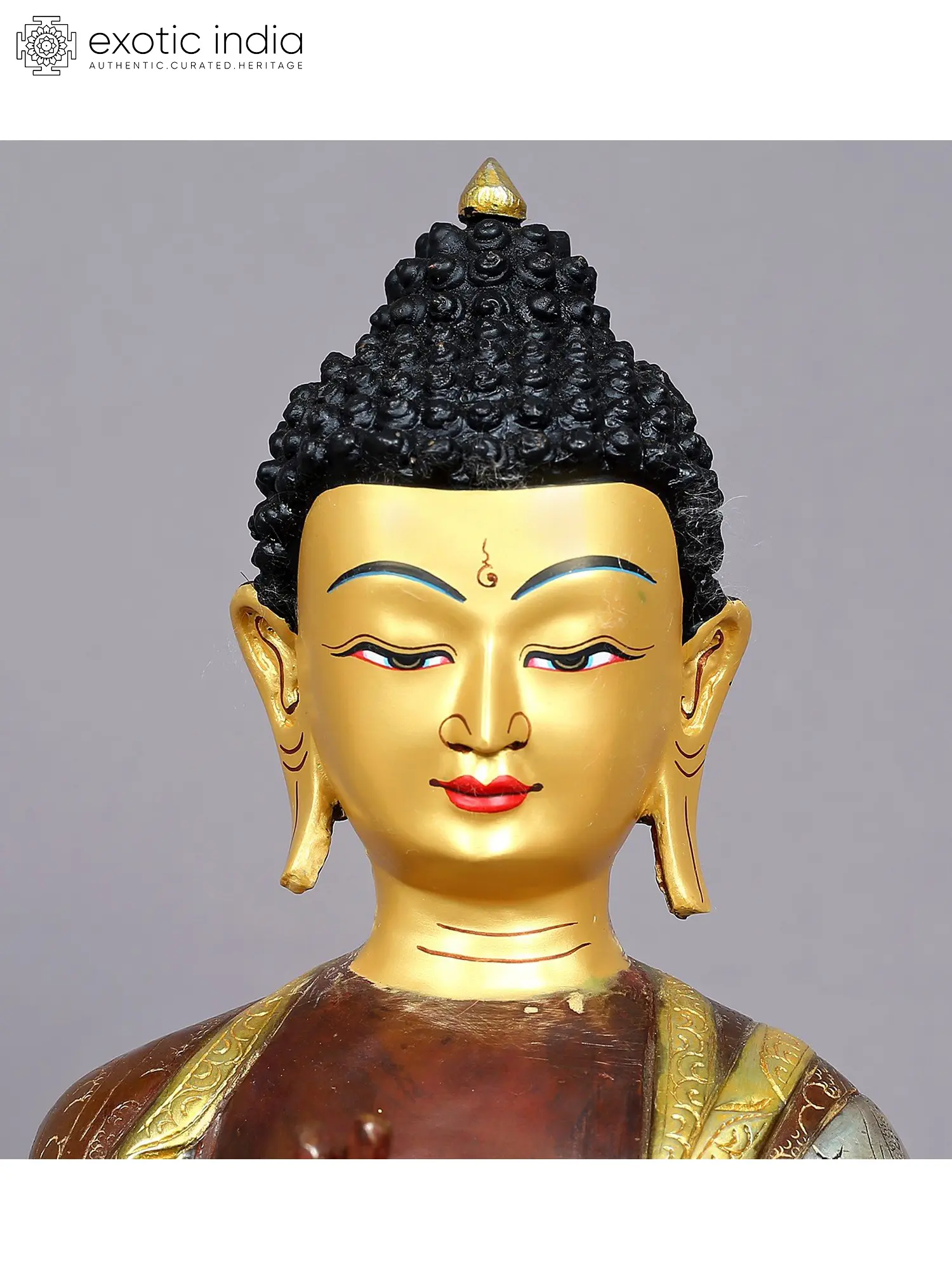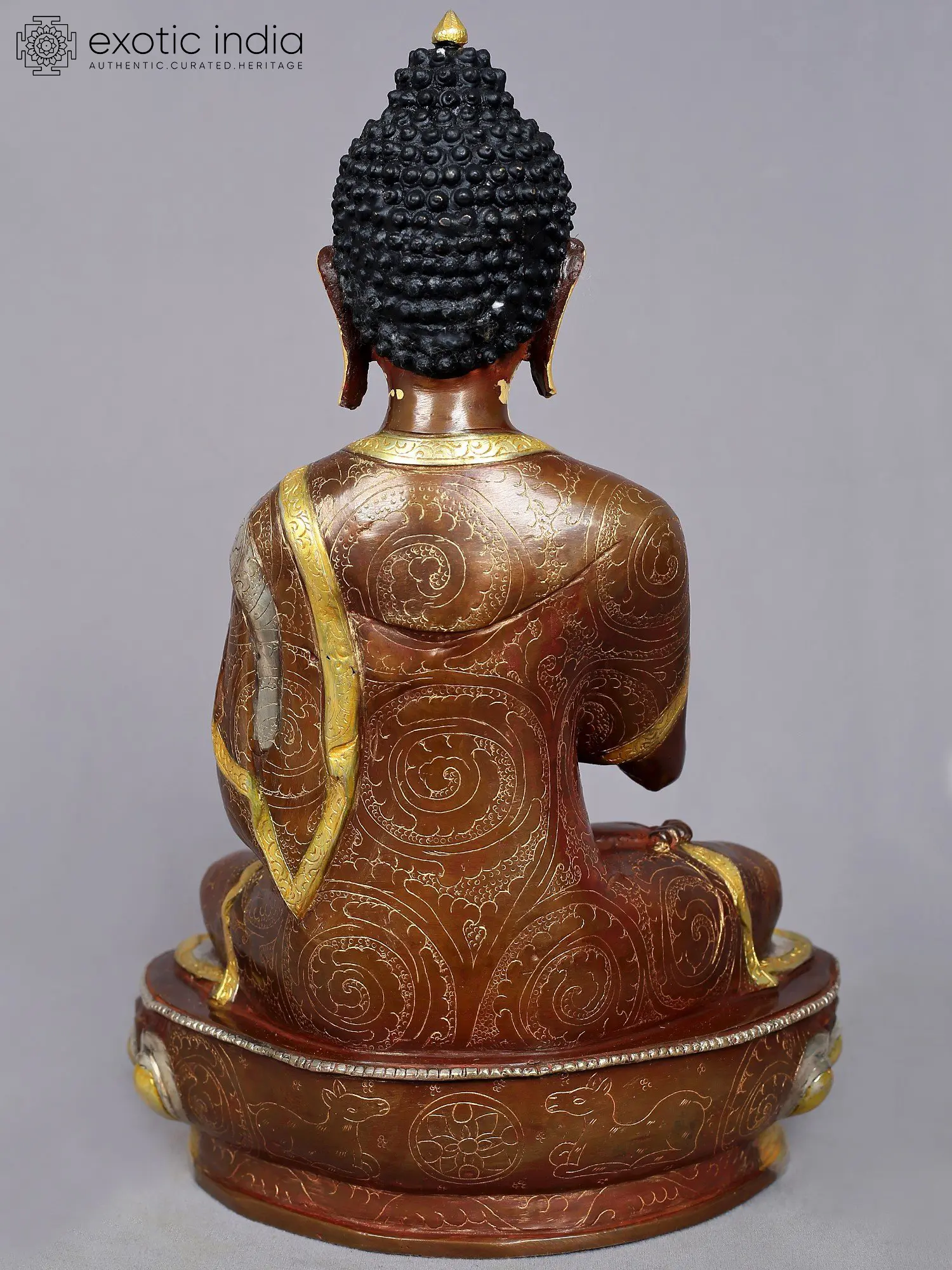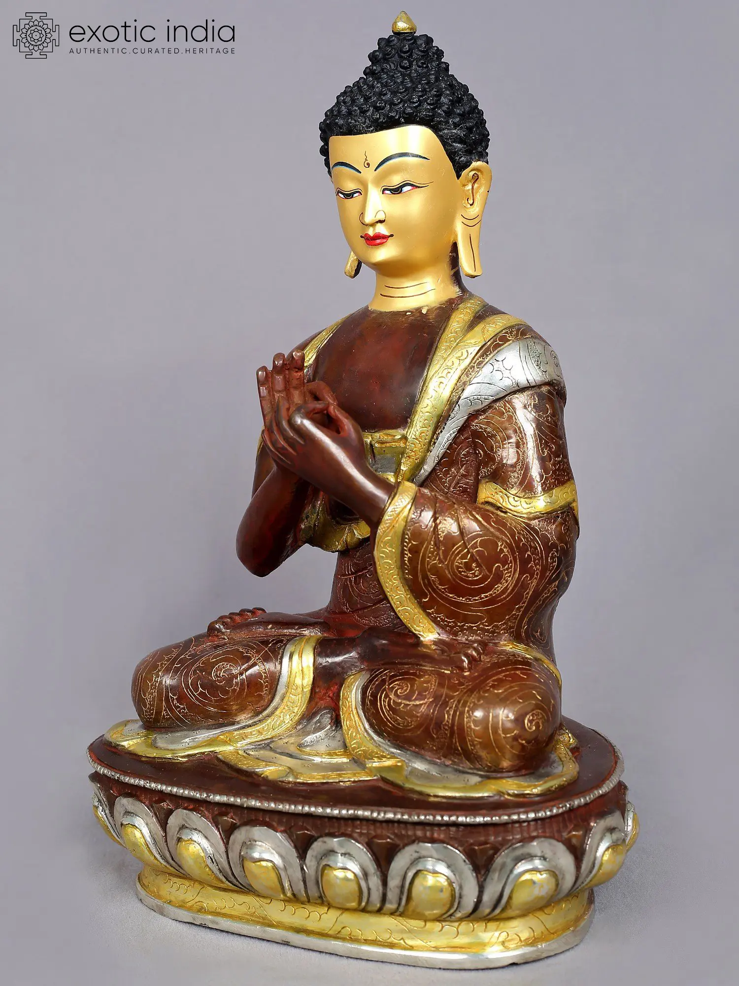 The Dharmachakra mudra, derived from the Sanskrit term "wheel of Dharma," signifies the initiation of the teachings of the Dharma. This mudra is most commonly associated with Gautam Buddha, the historical Buddha. It is formed when the thumbs and index fingers of both hands touch at their tips, creating a circular shape that represents the Wheel of Dharma.