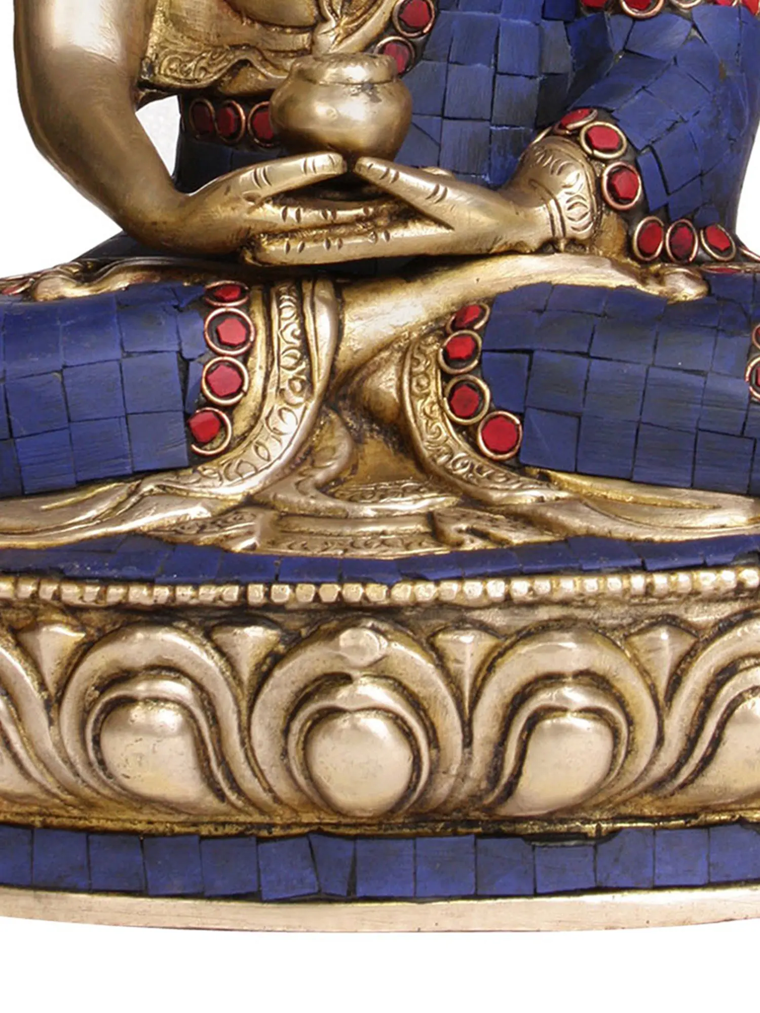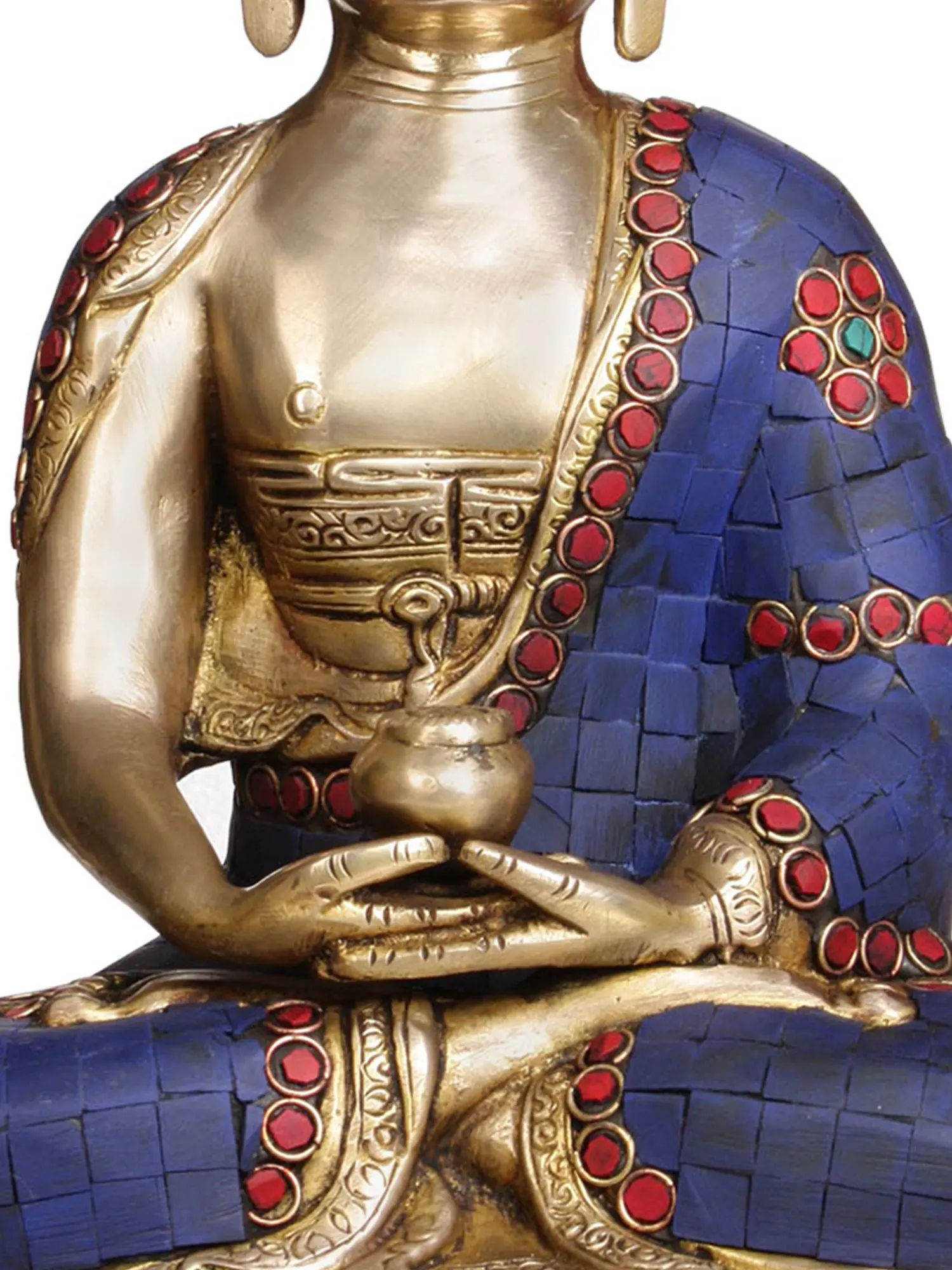 13" Lord Buddha with Pinda-Patra (with Superfine Inlay Work) In Brass