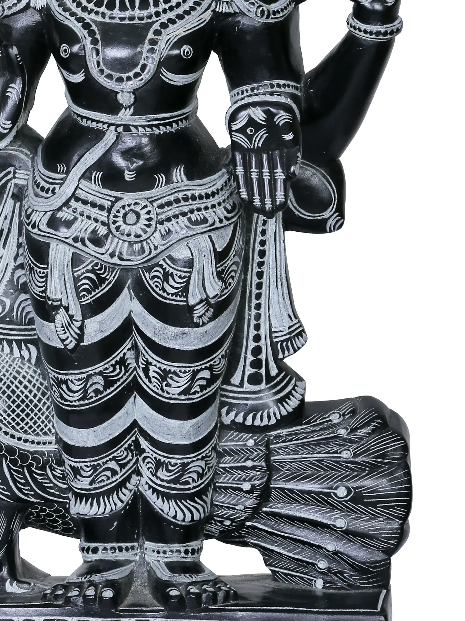 62" Kartikeya Stone Idol with Peacock | Murugan Black Granite Statue