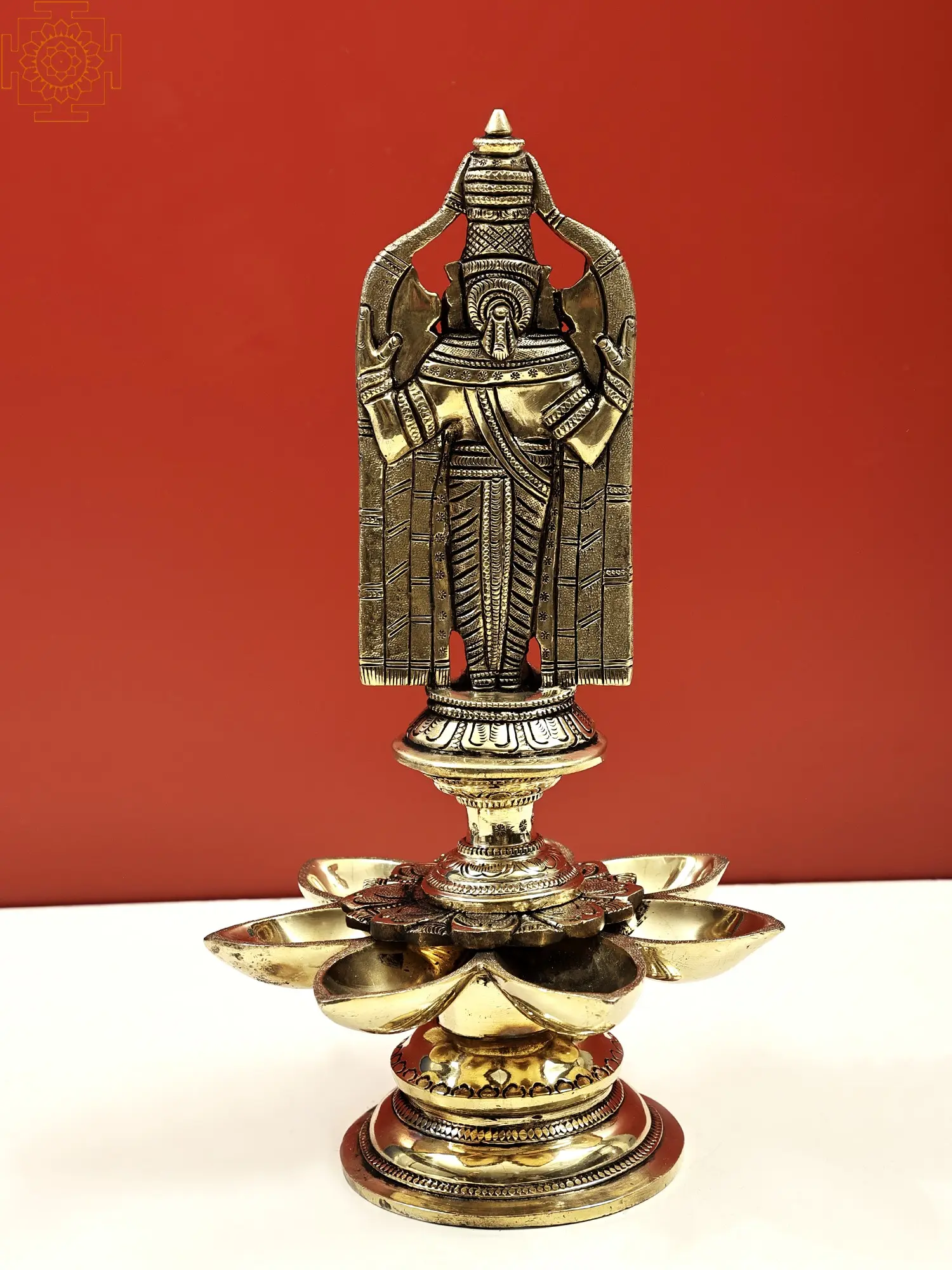 13" Lord Venkateshvara as Balaji at Tirupati with 7 Wicks Lamp | Handmade