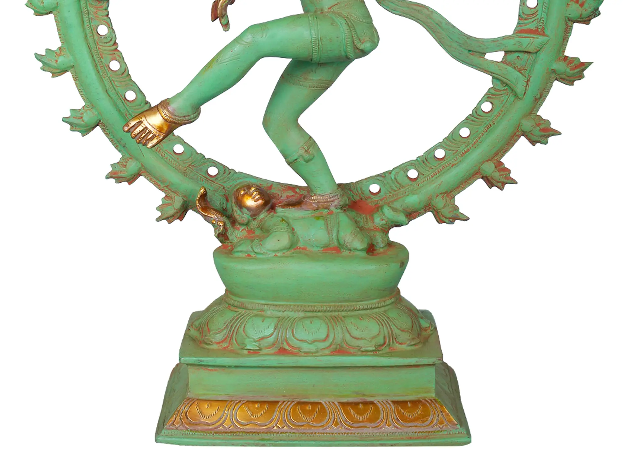 Delve into the divine dance of Lord Shiva with this Handmade Brass Nataraja. Crafted in India, this exquisite piece symbolizes the eternal rhythm of existence. Nataraja represents the cosmic dance of Shiva, where he dances the world into existence and then brings it to a blissful end. The intricate craftsmanship on this brass statue serves as a visual reminder of the interconnectedness of all life forms, reinforcing the concept of "Loka Samastha Sukhino Bhavantu" - "May all beings be happy." Having Nataraja in your sacred space not only adds an artistic touch but also invites the energy of transformation and spiritual awakening. It's a powerful emblem of the ever-turning wheel of life and the timeless beauty of Indian philosophy.