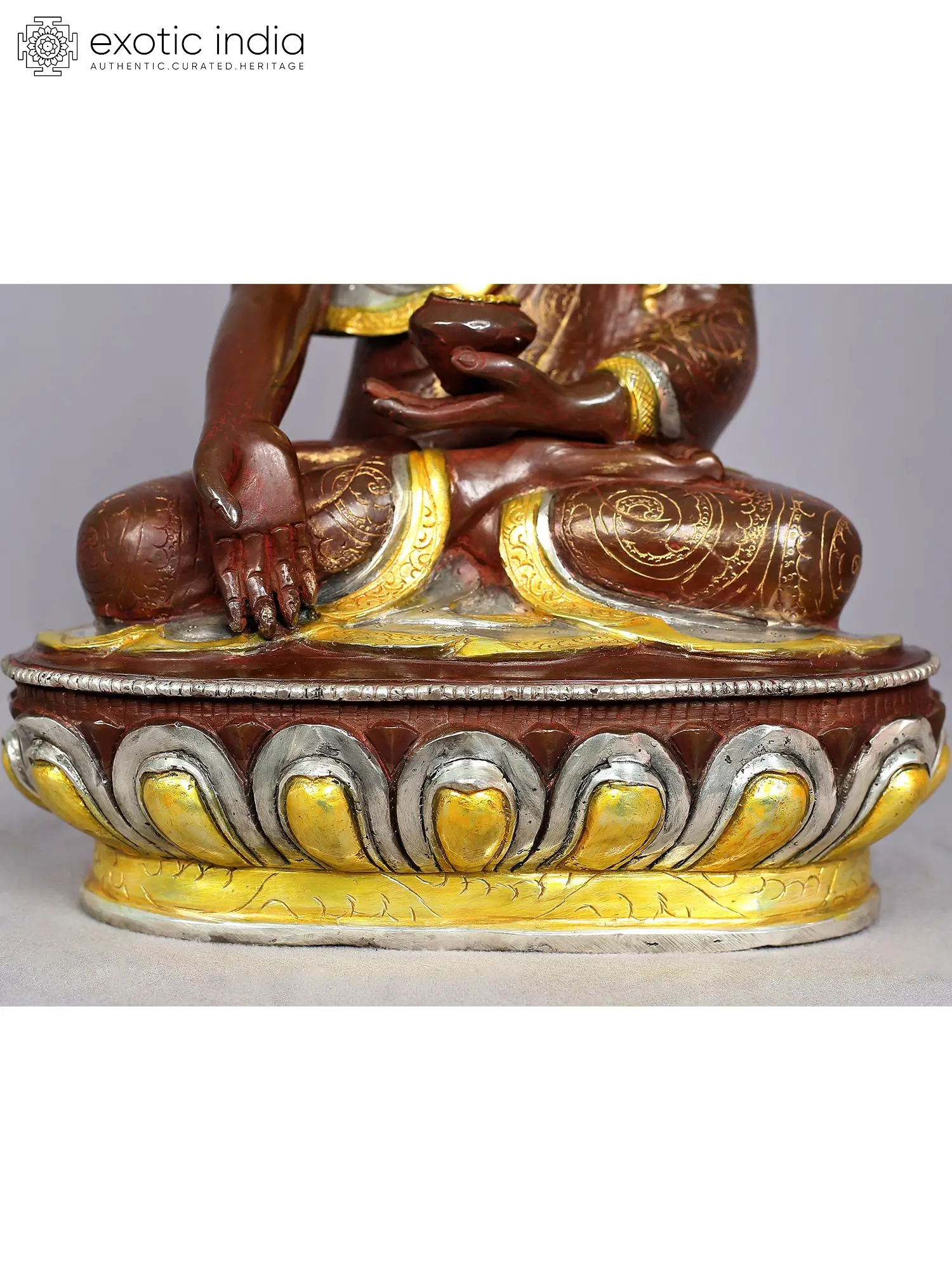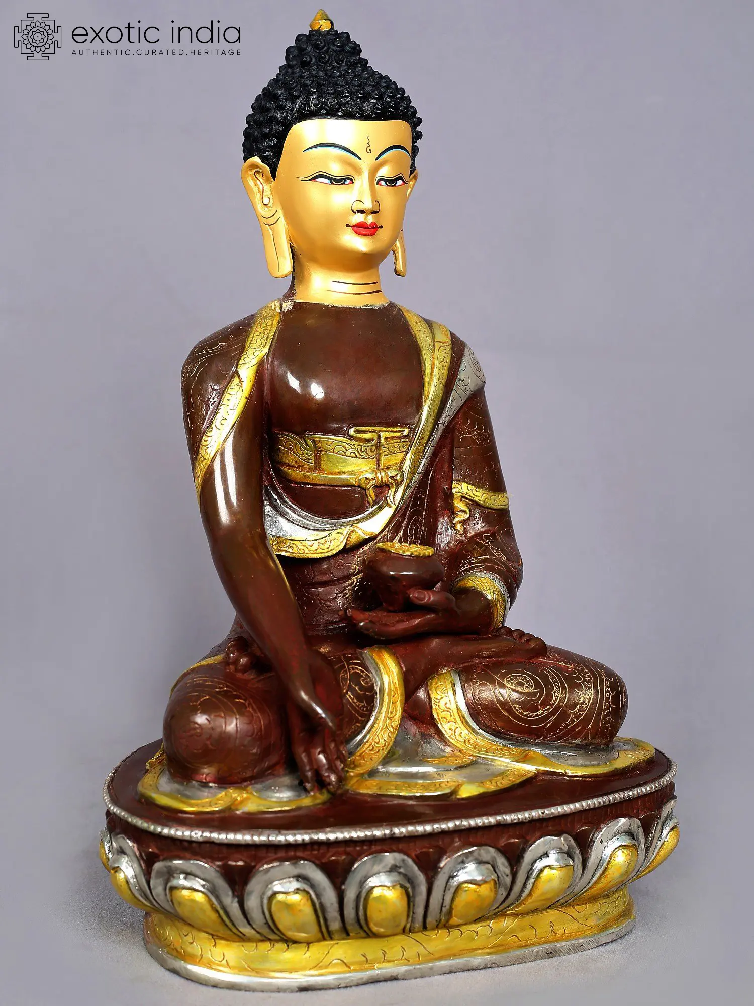 Shakyamuni Buddha also known as Gautama Buddha, is considered to be the founder of the Buddhist religion. Shakyamuni Buddha's right hand extends downward to touch the earth, symbolizing the pivotal moment when he called upon the earth to bear witness to his transcendence of Mara, the supreme deity of the samsaric world, who attempted to divert him from his meditation.