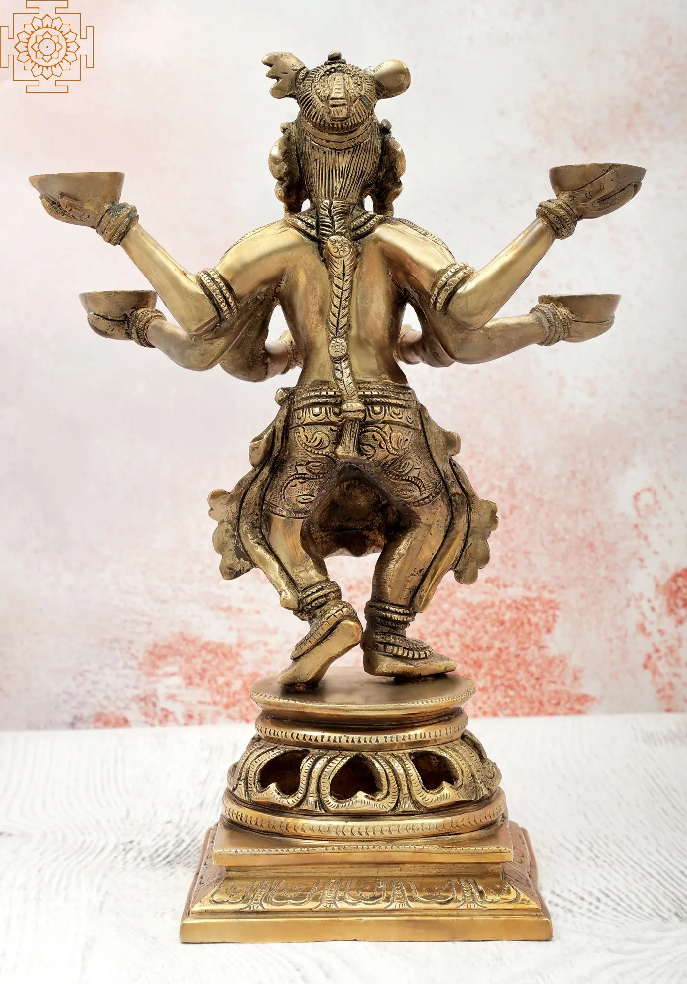 Her miraculous graces bless her devotees with prosperity, love, and inner beauty. This brass statue of Deepalakshmi stars five lamps that the goddess is holding that can be lit as a symbol of devotion towards her.