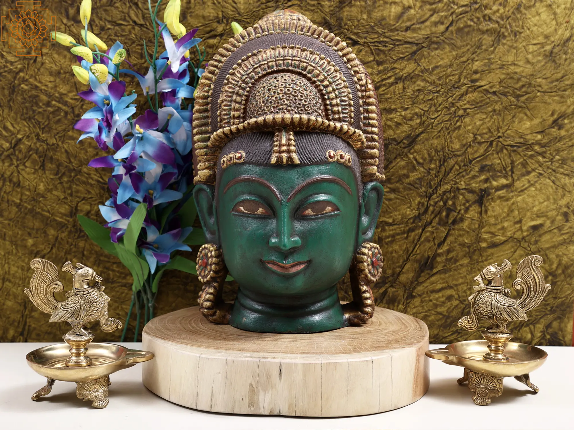 15" Superfine Goddess Parvati Head In Brass | Handmade | Made In India