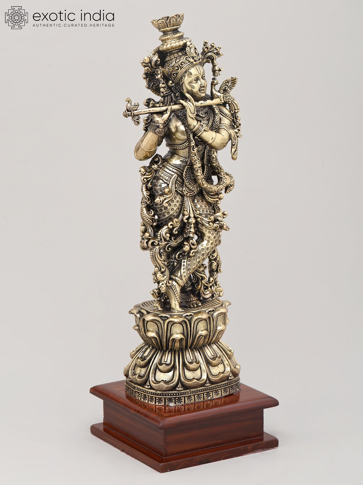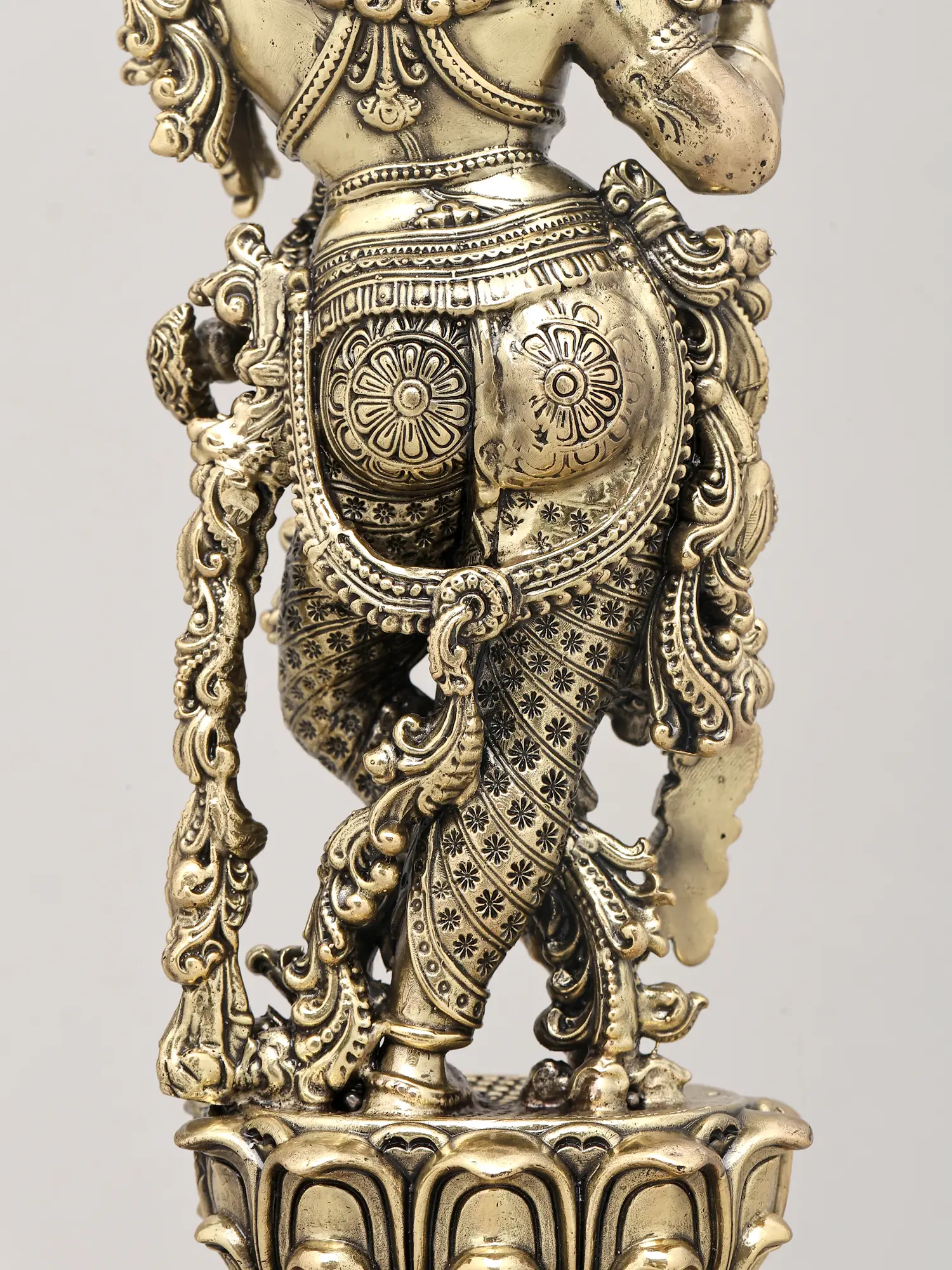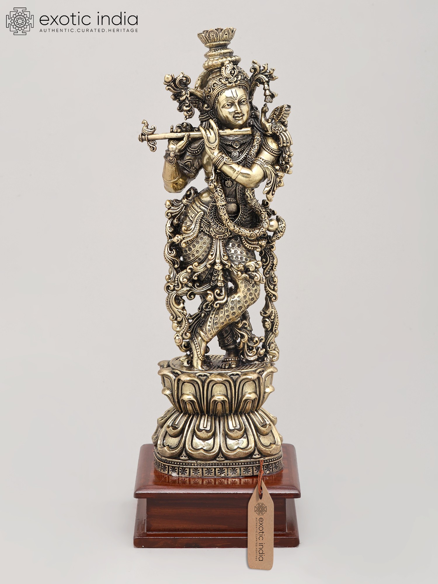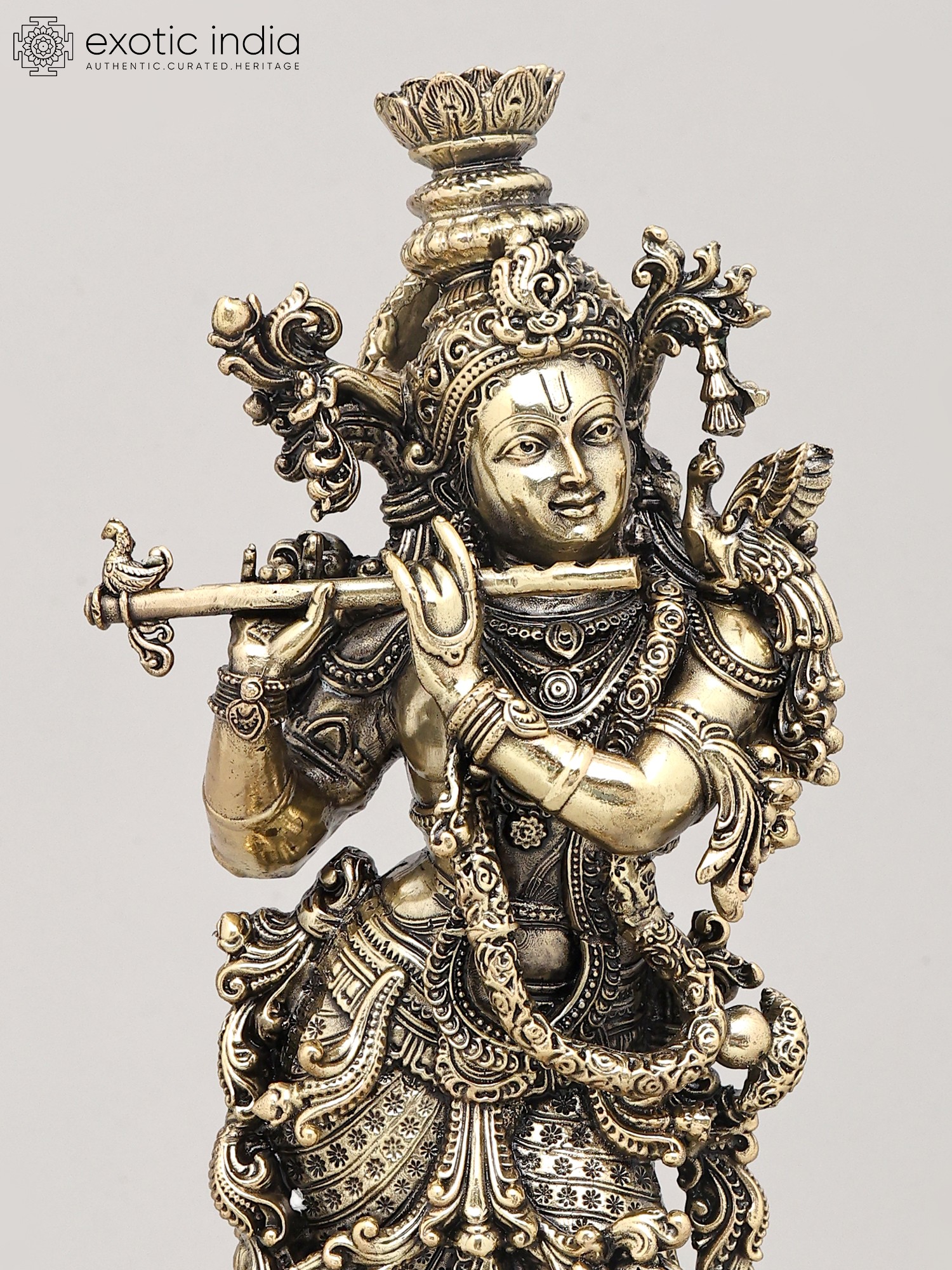 7" Superfine Silver-Plated Lord Krishna Idol Playing Flute | Brass Statue (Different Sizes)