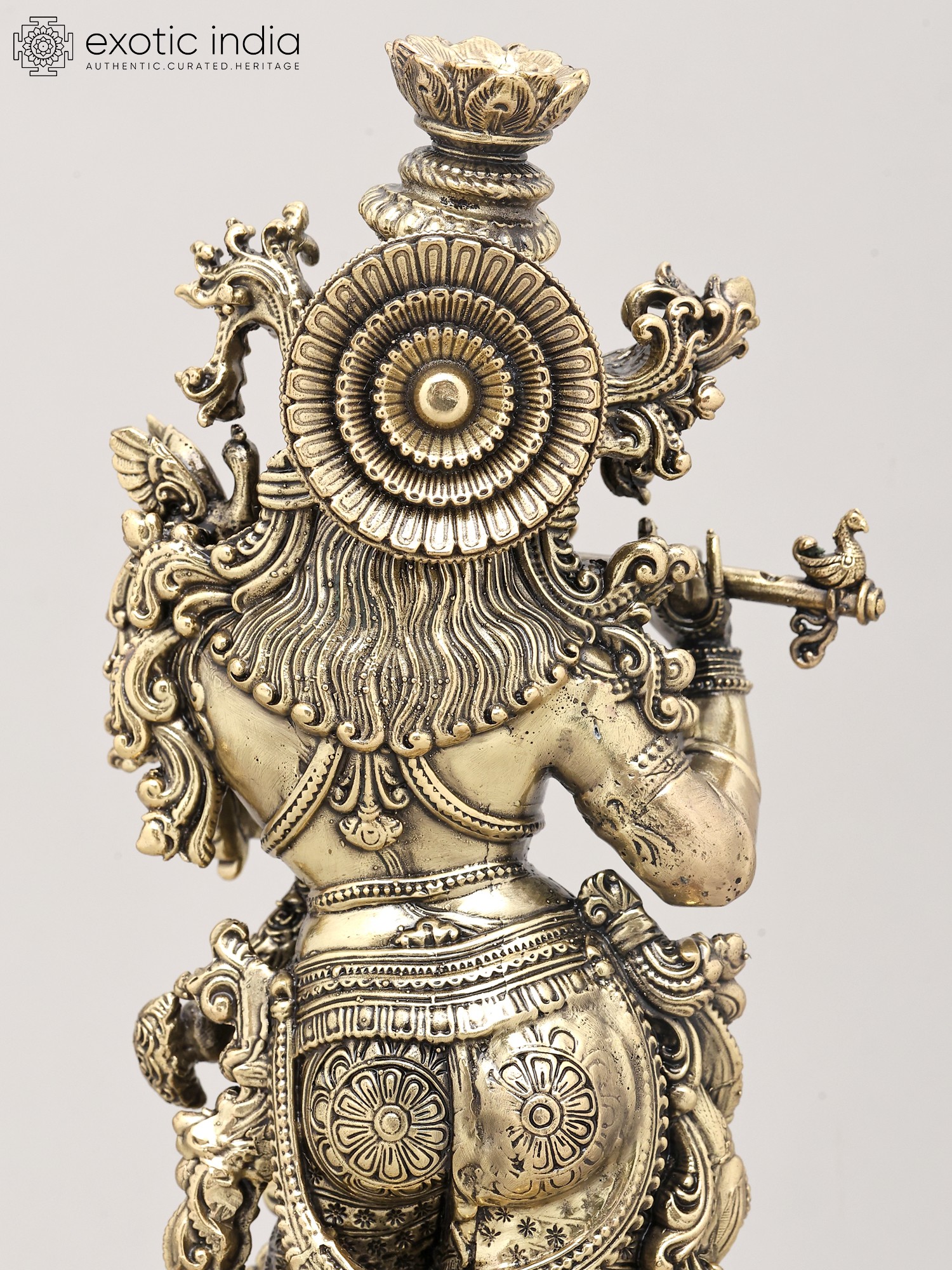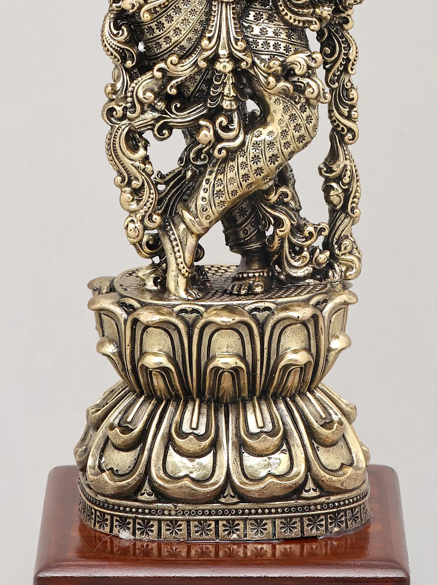 6" Brass Shri Krishna Flute Player | Exquisite Small Sculpture | Handcrafted Indian Idol