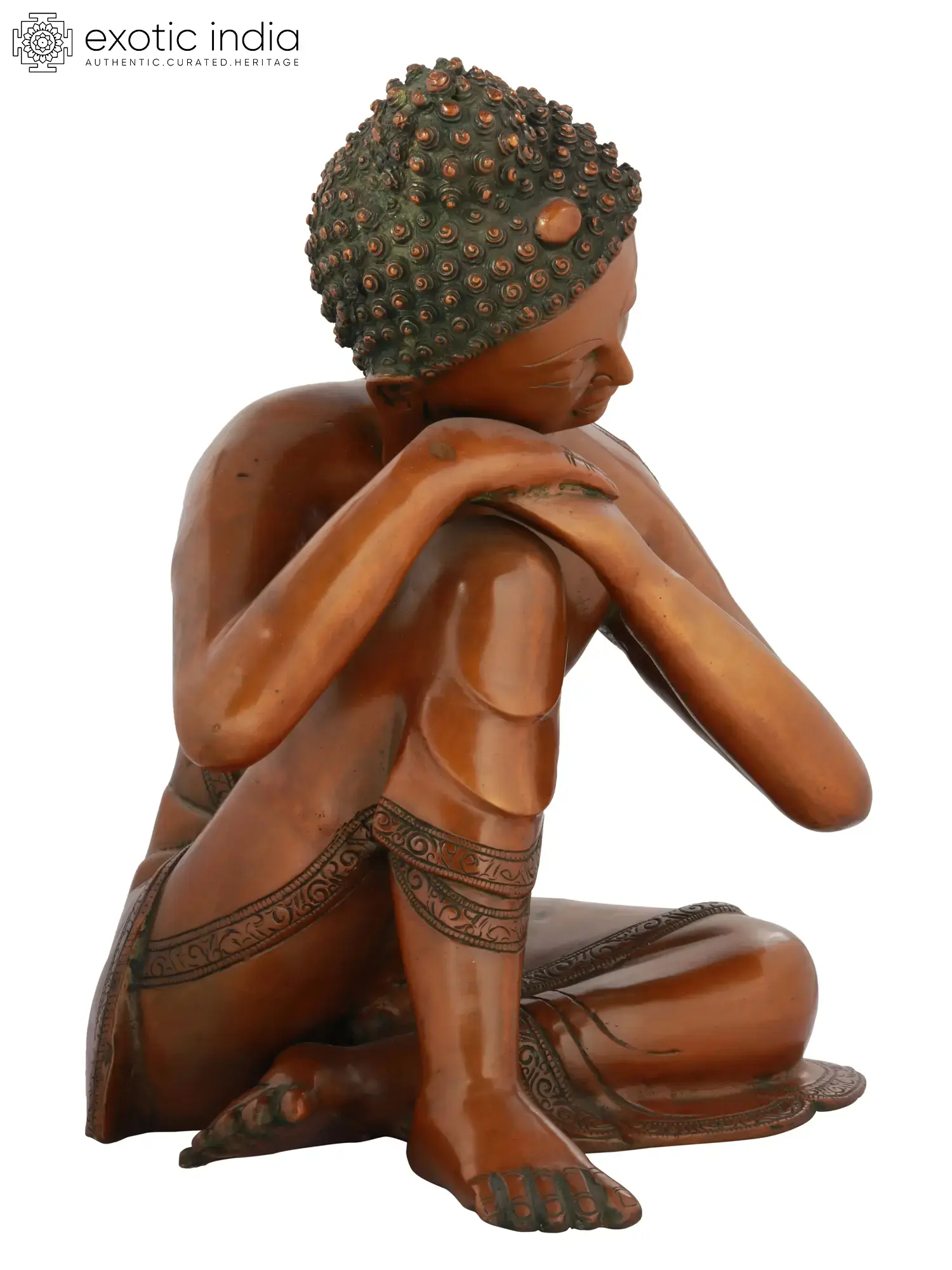 Experience the serenity of ancient wisdom with this intricately crafted Buddha brass sculpture. This masterpiece emanates tranquility and enlightenment, making it a perfect addition to your space for meditation and reflection. The Buddha's serene expression and graceful hand gestures convey inner peace and compassion. His piece of robe and halo of enlightenment symbolize purity and spiritual awakening. This sculpture not only serves as a decorative piece but also as a source of inspiration for your spiritual journey. Crafted with precision and devotion by skilled artisans, it captures the essence of Buddhism's profound teachings, bringing a sense of harmony to your surroundings.