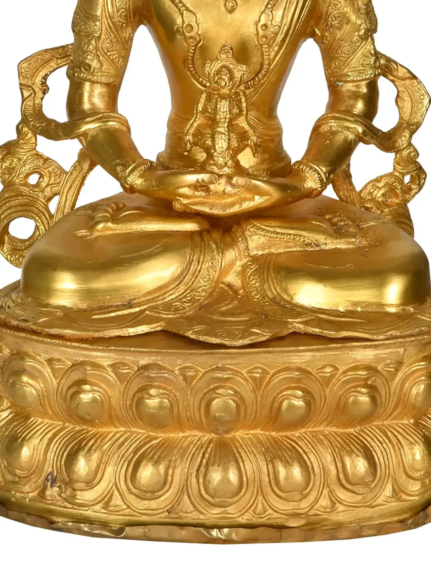 Amitabh Buddha, steeped in meditation, is an iconic representation of profound contemplation and spirituality in Buddhism. The image captures the Buddha in a serene and meditative posture, exuding an aura of transcendental peace. With closed eyes and a composed expression, Amitabha reflects in tranquility and deep insight. This form of Buddha is often associated with the Pure Land Buddhism tradition, where Amitabha presides over the Western Pure Land, a realm of ultimate enlightenment and liberation. Amitabha Buddha embodies compassion and limitless light, symbolizing the path to enlightenment and the aspiration to be reborn in his Pure Land.