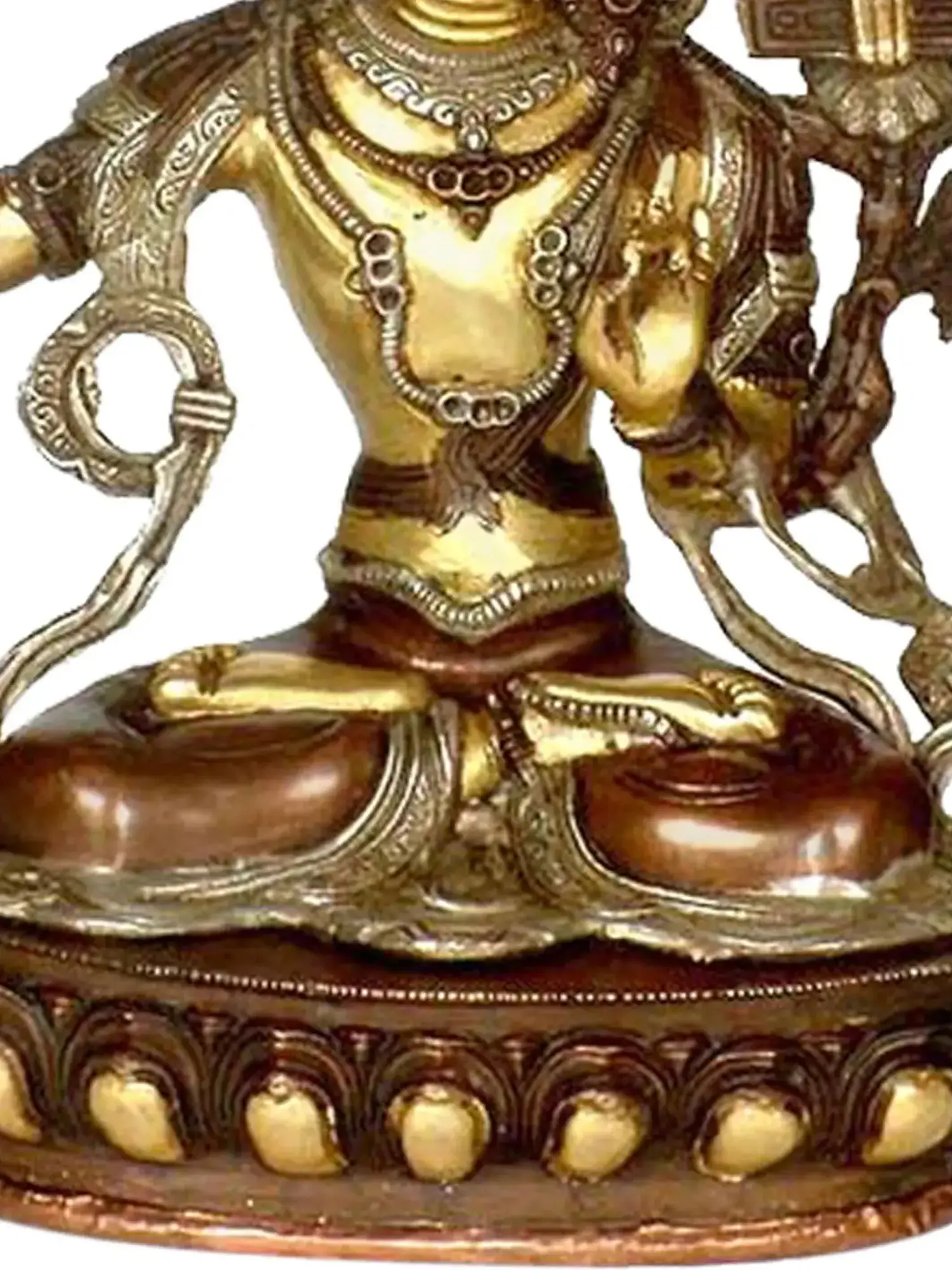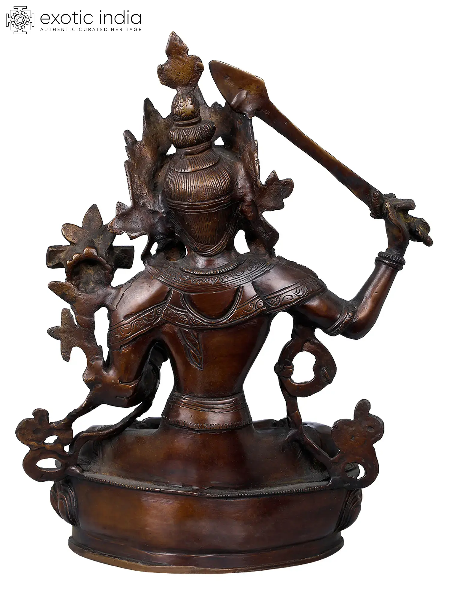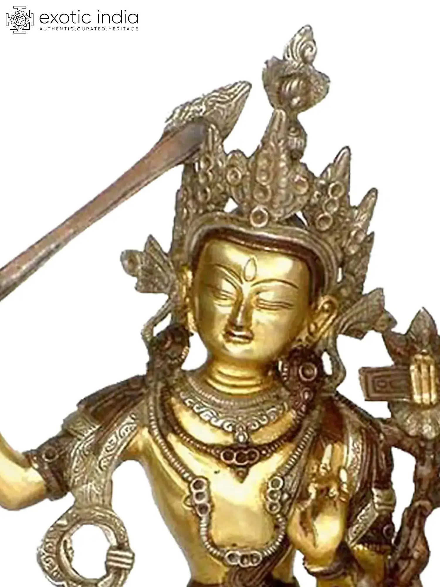 Discover the profound wisdom and serenity of the Tibetan Buddhist Deity, Manjushri, in this exquisite brass sculpture, meticulously handmade in India. Manjushri embodies the essence of transcendent wisdom and enlightenment. Manjushri's gentle demeanour and the flaming sword he wields symbolise the dispelling of ignorance, leading to the awakening of knowledge and insight. The fusion of Indian craftsmanship and Tibetan spirituality in this sculpture exemplifies a bestseller. Allow Manjushri's presence in your home to inspire your journey toward enlightenment and illuminate the path of wisdom.