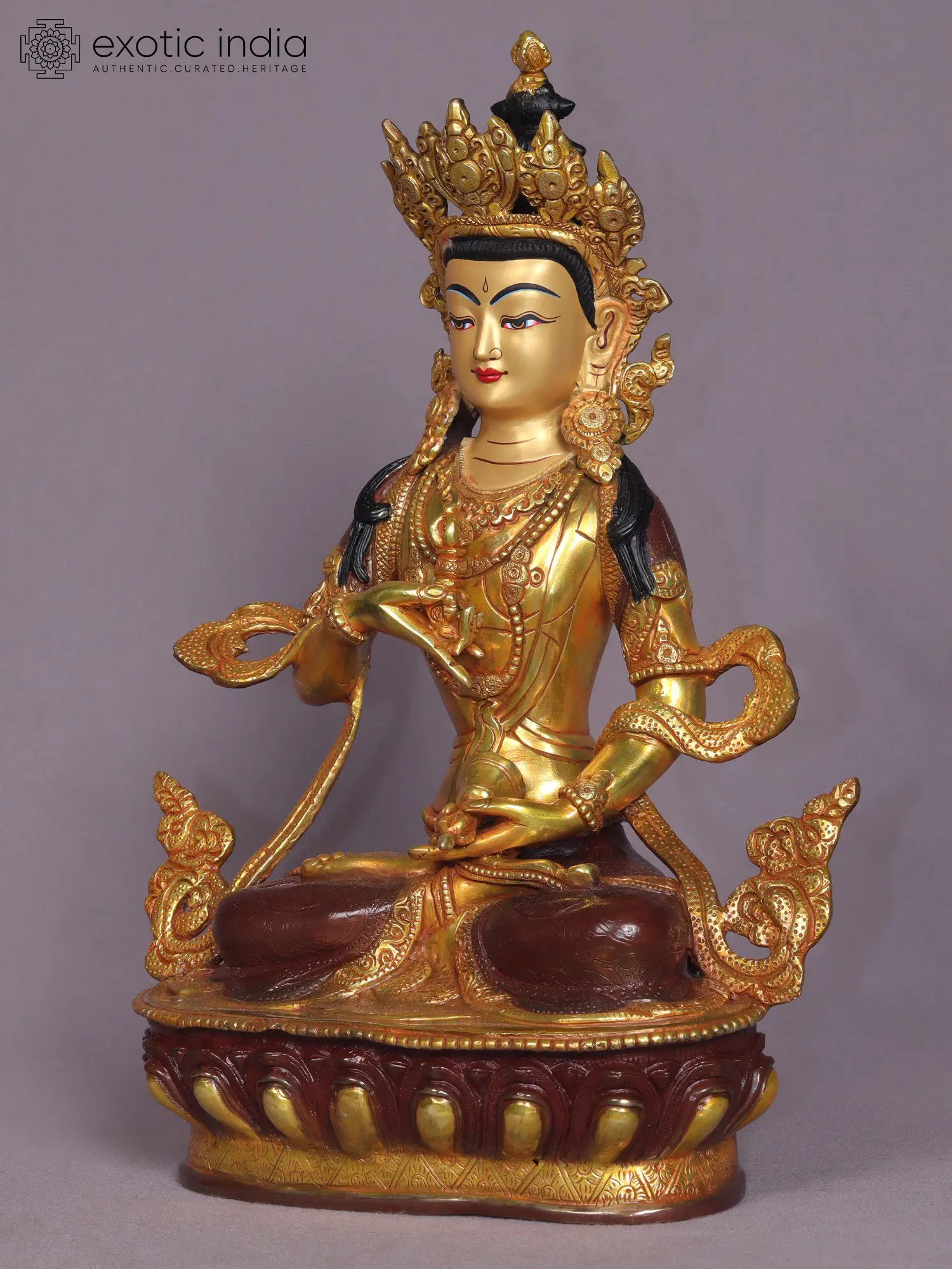 Vajrasattva holds the pivotal role of the "great purifier”. Belonging to the Aksobhya Vajra family, which also includes Vajrapani, Vajrasattva exudes a youthful and serene demeanor. He is attired in resplendent golden silks and bedecked with jewels reminiscent of a wealthy prince.