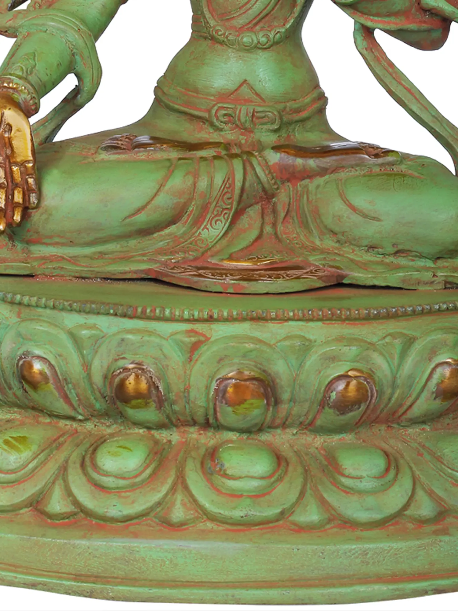 Tara is an important and revered deity in Tibetan Buddhism who appears as a female Bodhisattva. Buddhist monks and followers meditate on the image or deity of Tara to develop some good qualities such as compassion and kindness. Tara is known as the mother of compassion or liberation and is considered the female aspect of Avalokiteshvara (who possesses the compassion of all Buddhas). She manifests in different forms such as Green Tara and White Tara. Green Tara is associated with fearlessness and White Tara, as radiant as the moon, is associated with good health. Tara also appears in red, blue, and yellow colors.