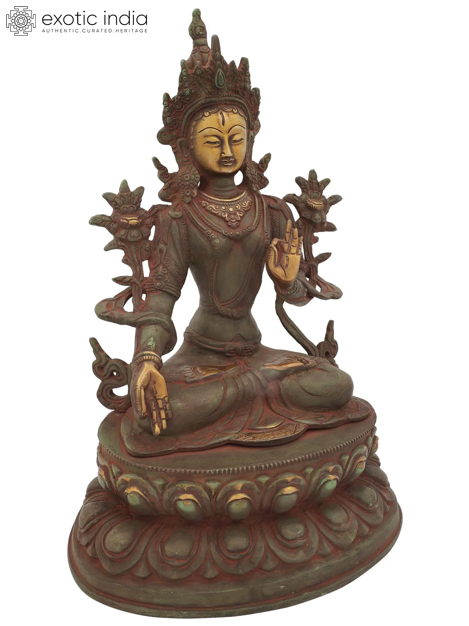 13" Tibetan Buddhist Goddess White Tara In Brass | Handmade | Made In India