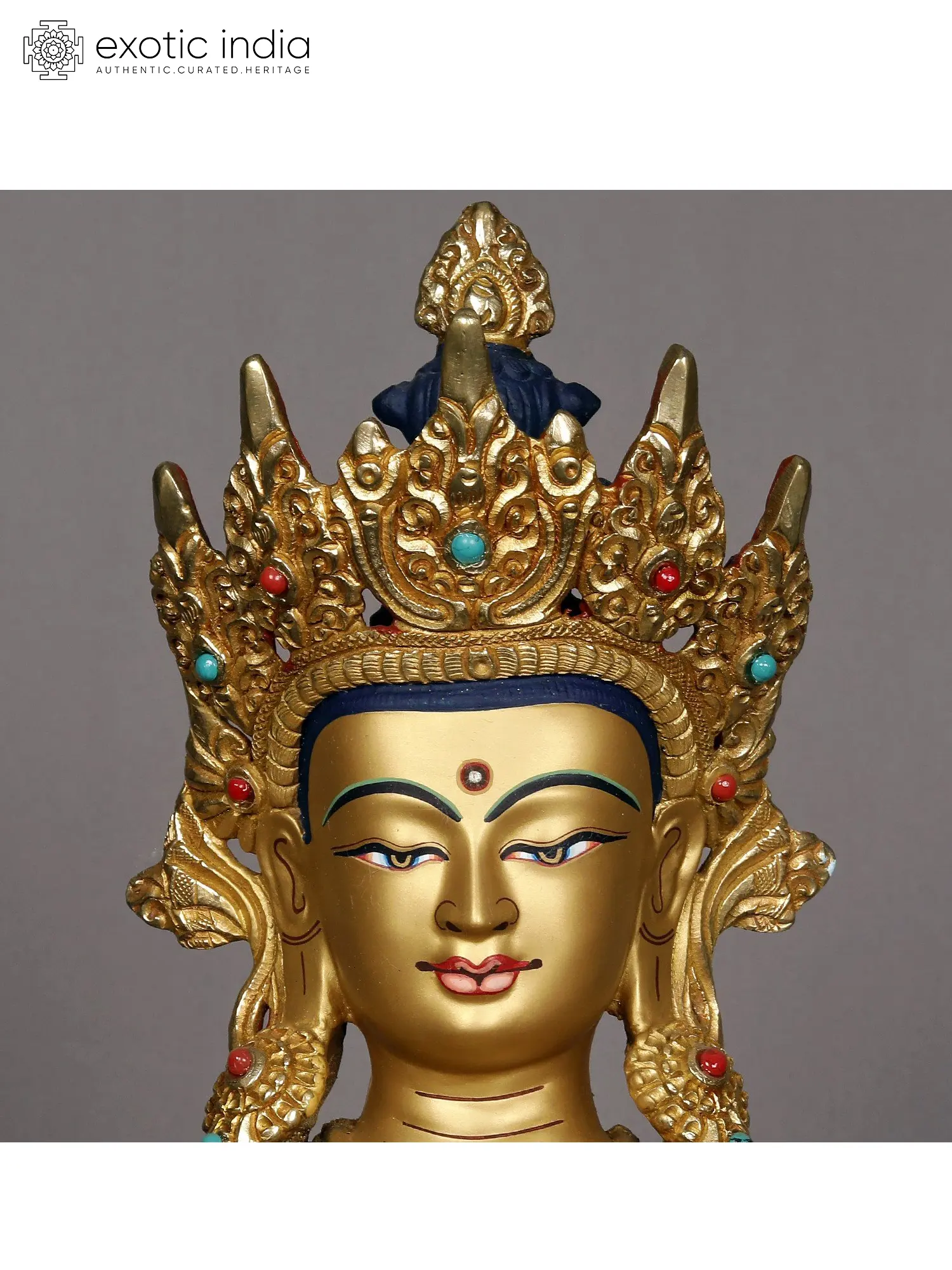 Aparmita, also referred to as Amitayus, upholds the essence of Buddha Amitabha in his aspect as the Bestower of Longevity. This celestial figure seamlessly bridges the realms of a divine Buddha and a fully realized Bodhisattva, having ascended to Buddhahood through countless lifetimes of dedicated merit as a Bodhisattva. Aparmita, Amitayus, and Tsepame sit serenely in a posture of perfect equanimity, with hands gracefully forming the Dhyana Mudra.