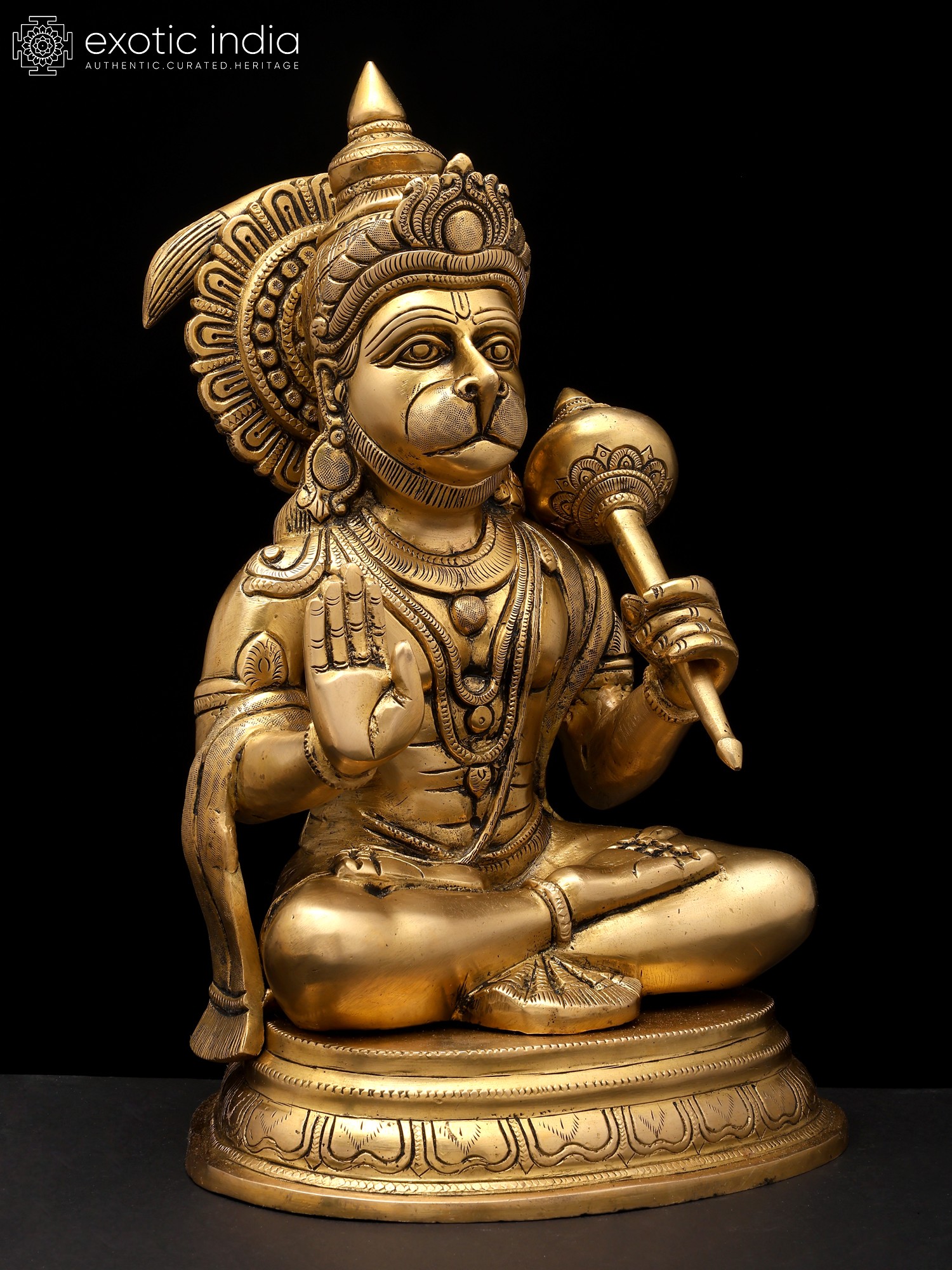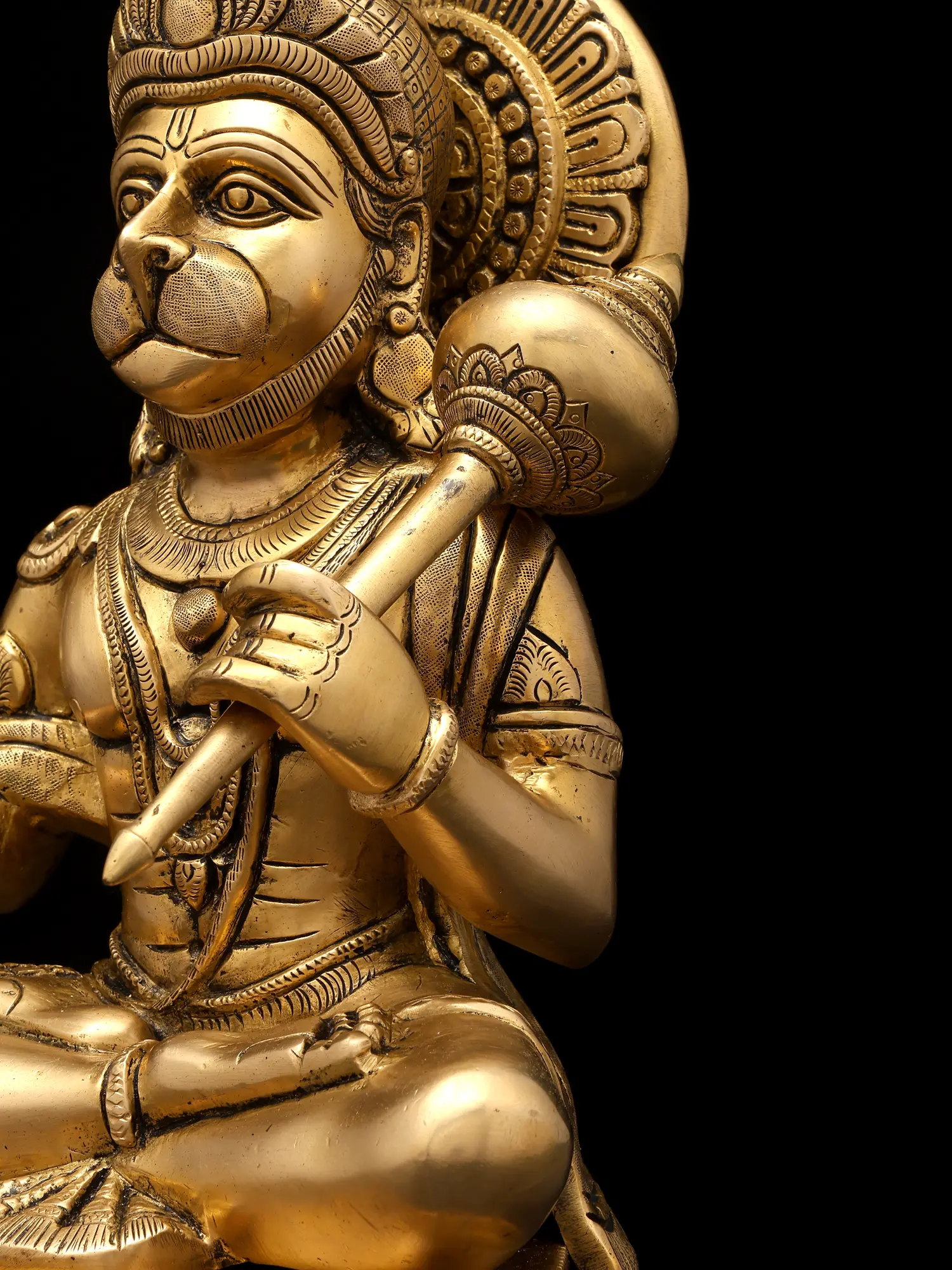 Superfine Sitting Lord Hanuman in Blessing Gesture | Brass Statue in Multiple Sizes