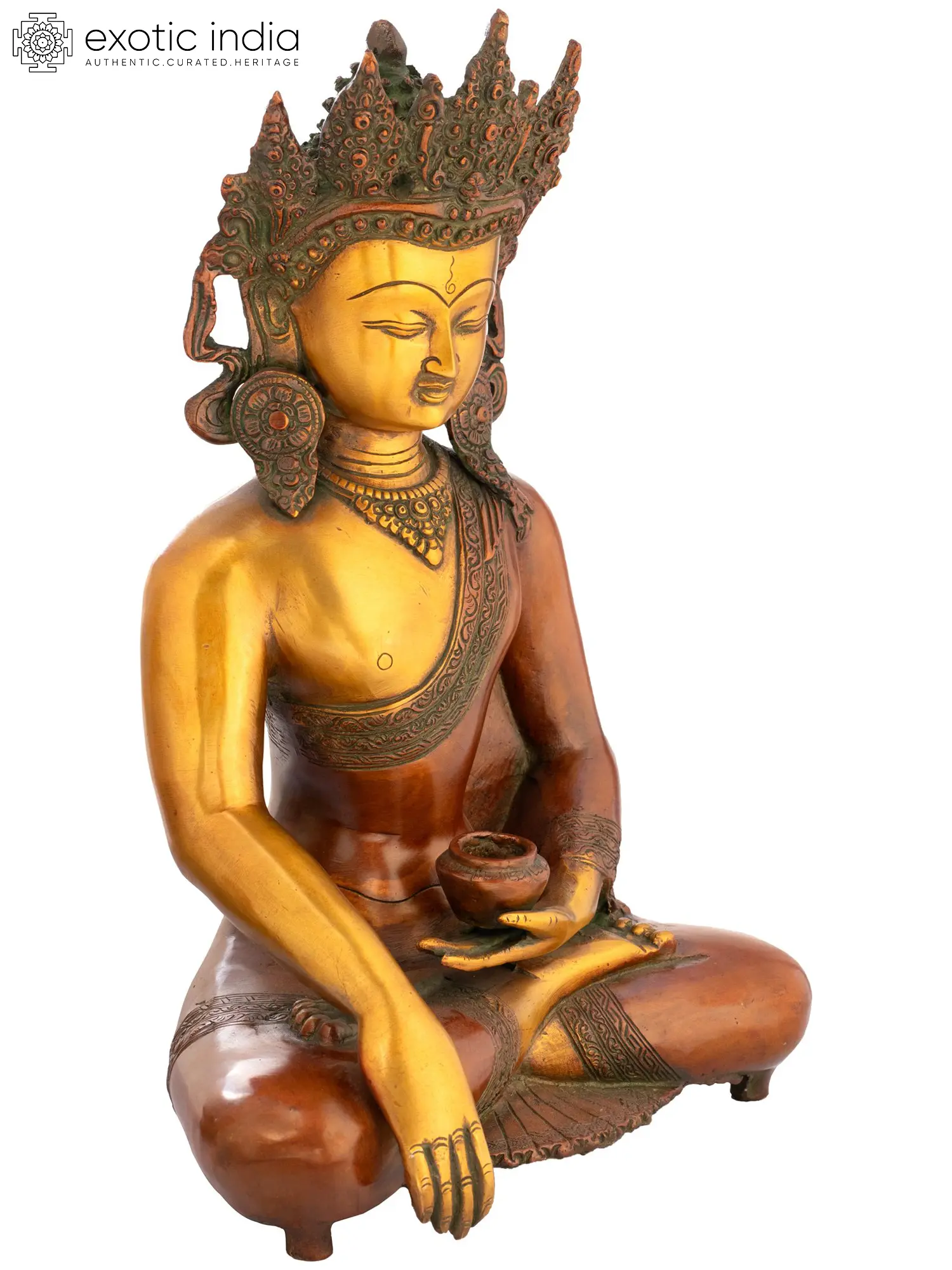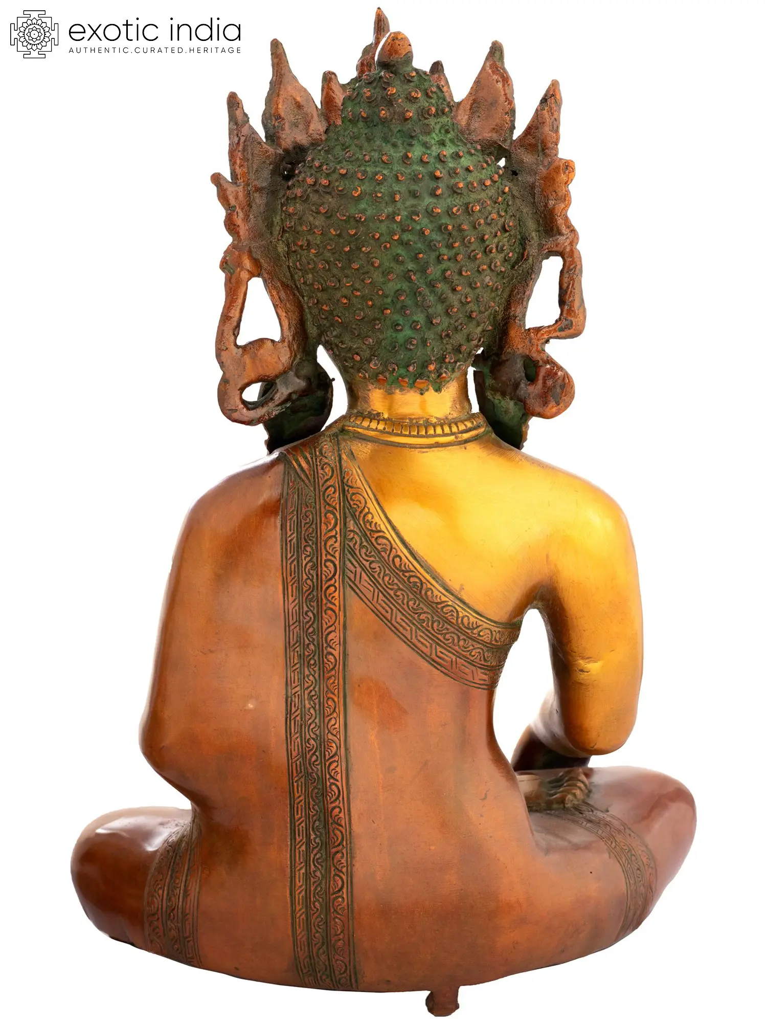 14" Buddha With The Elaborate Crown And Kundalas In Brass | Handmade | Made In India