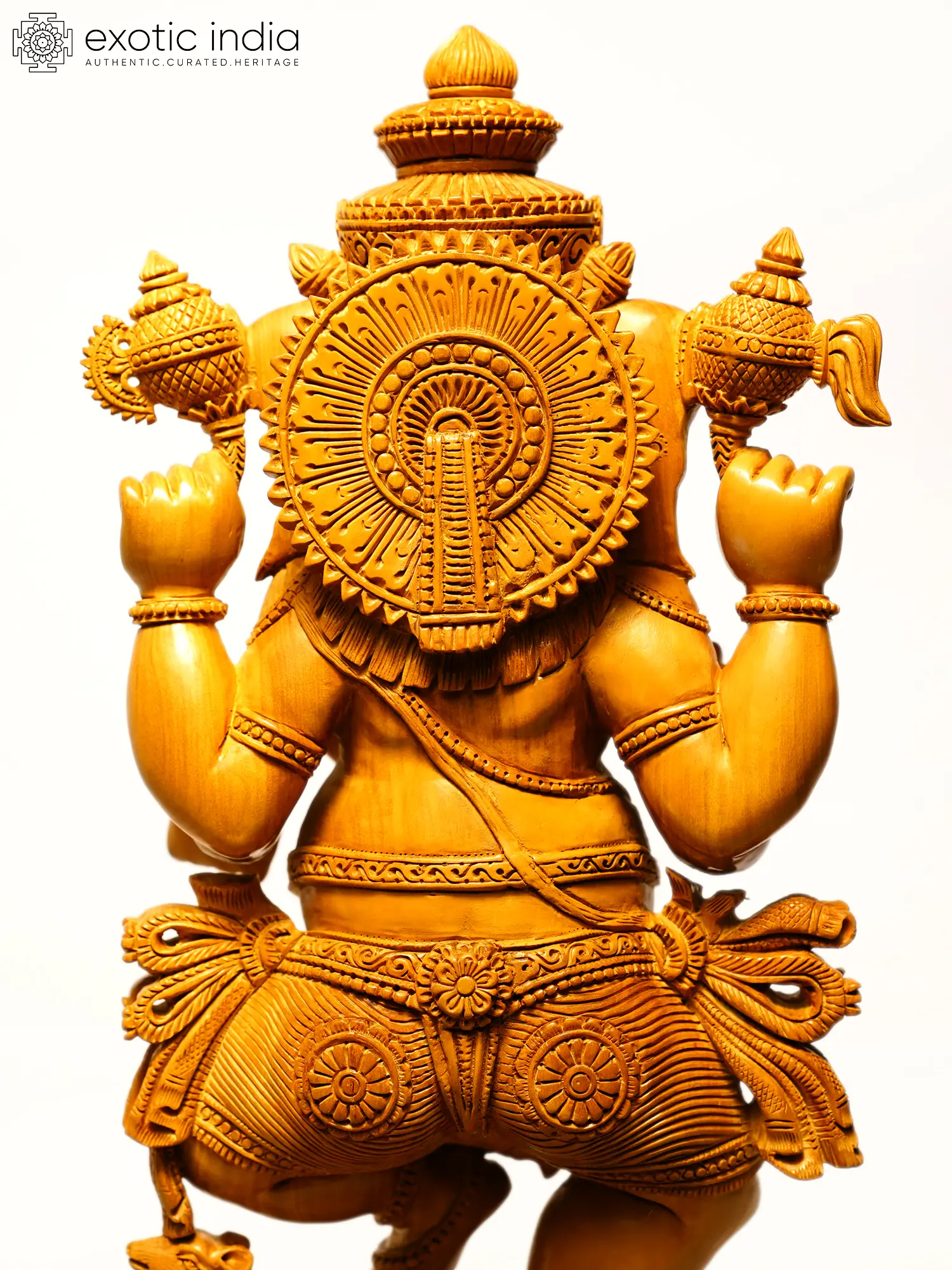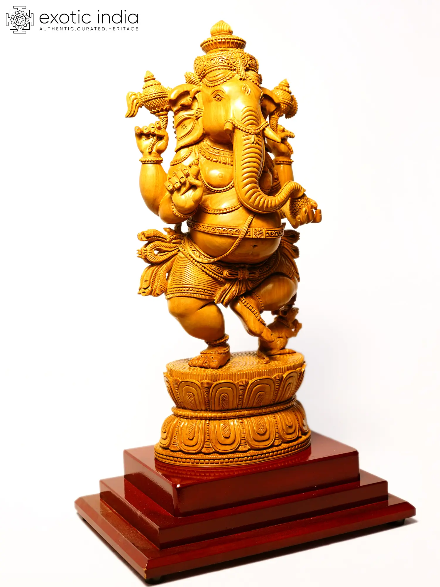 17" Four Armed Dancing Lord Ganesha | Sandalwood Carved Statue