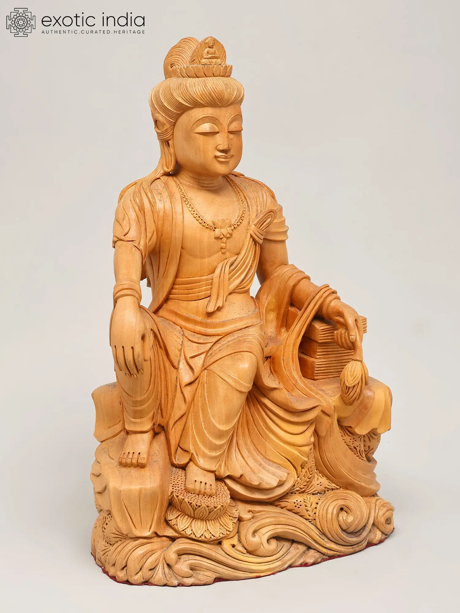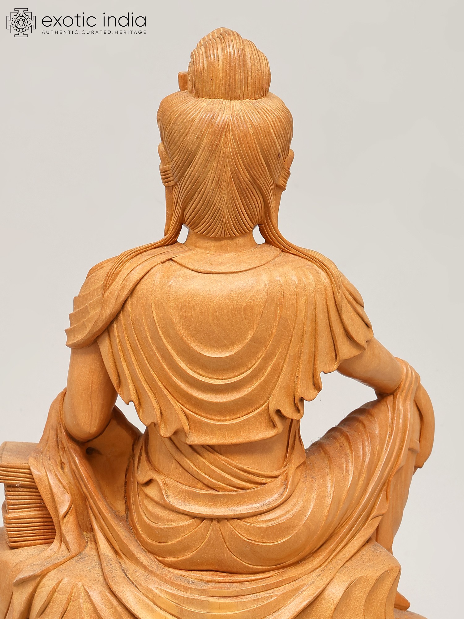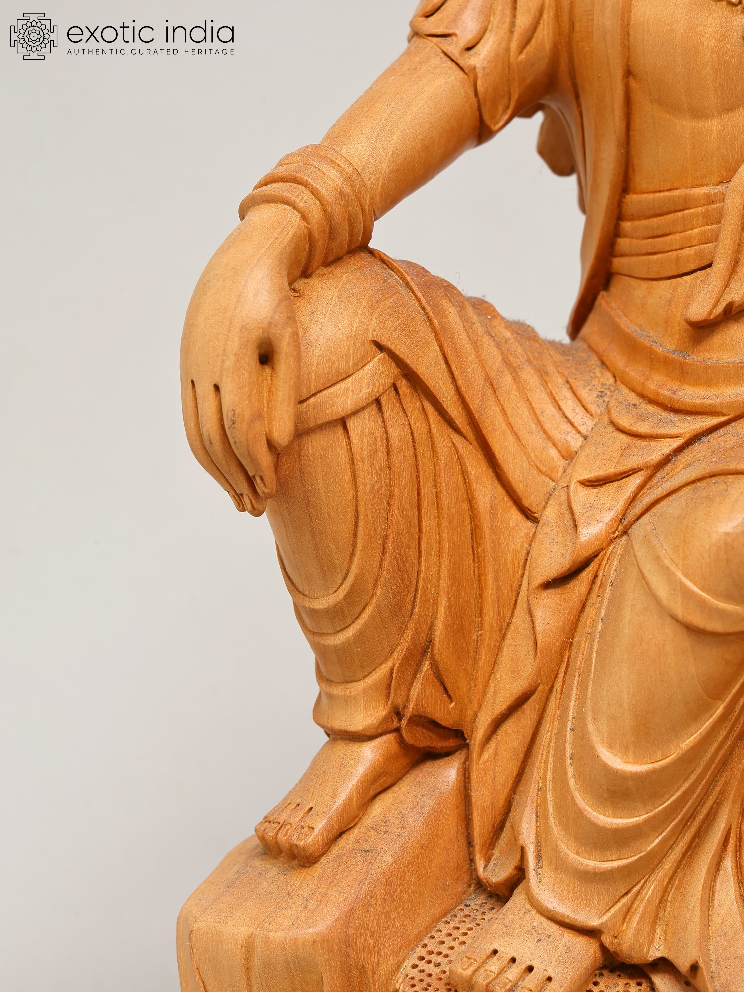 24" Meditating Lord Buddha Seated on Throne | Wood Carving