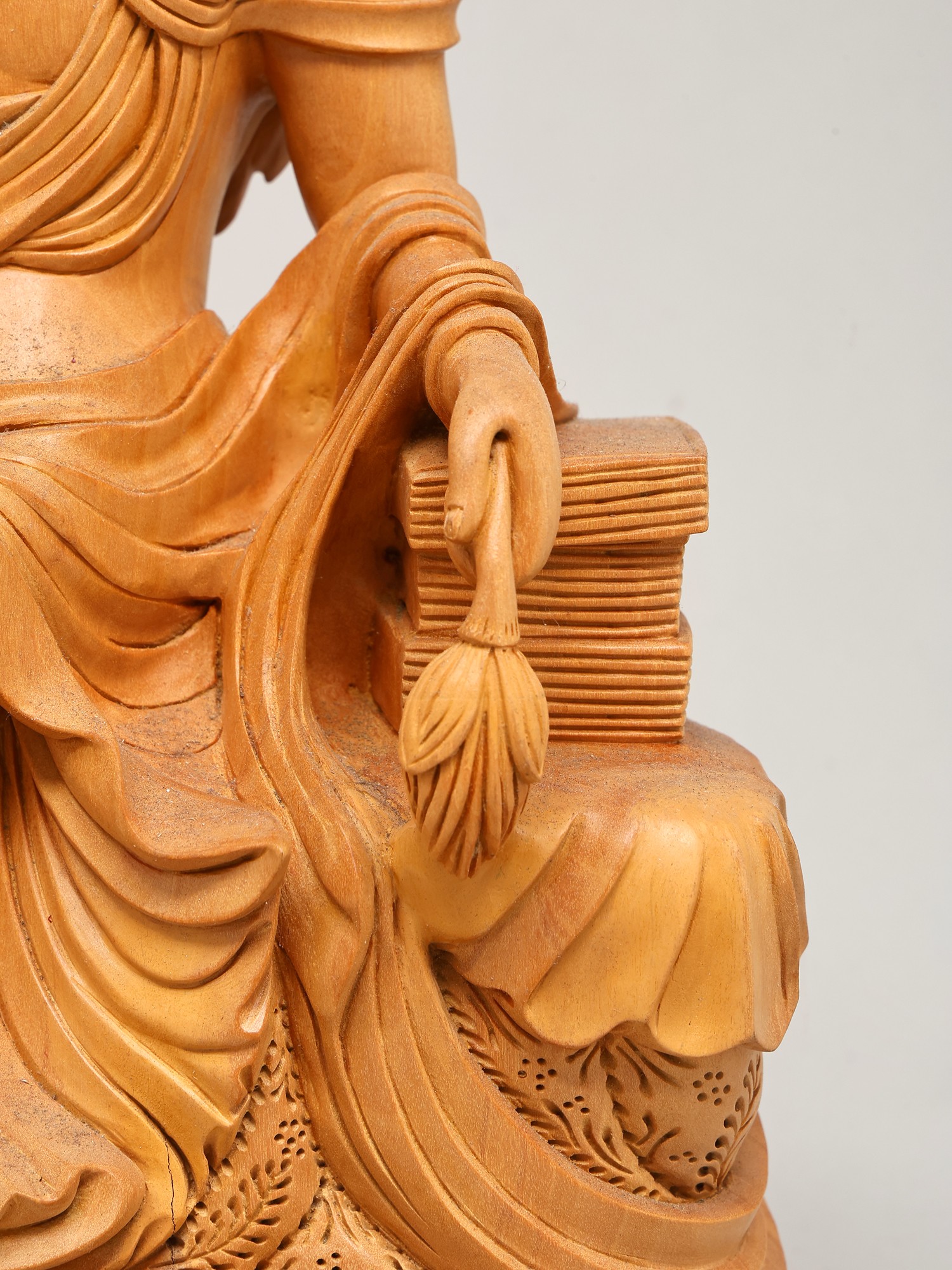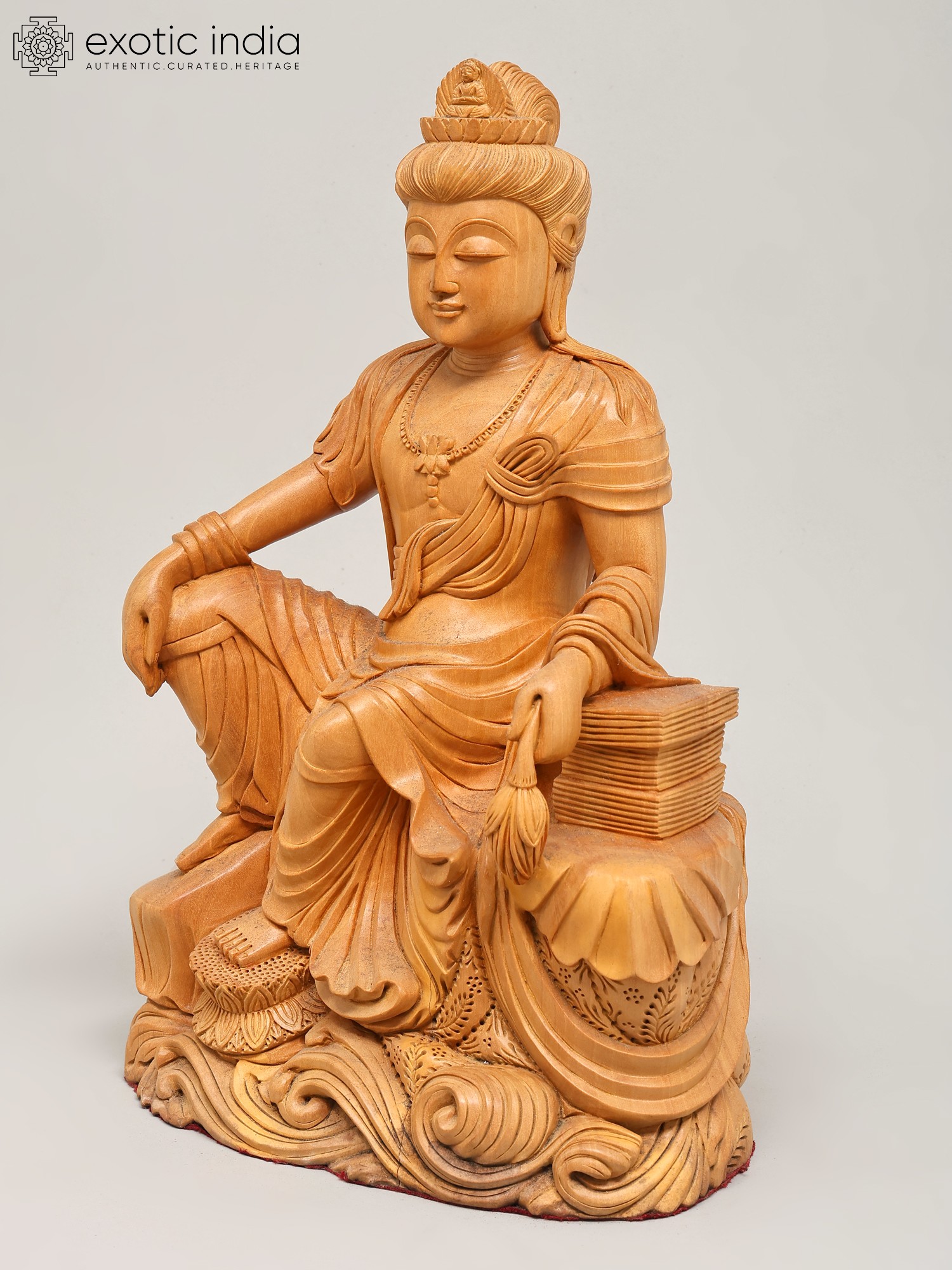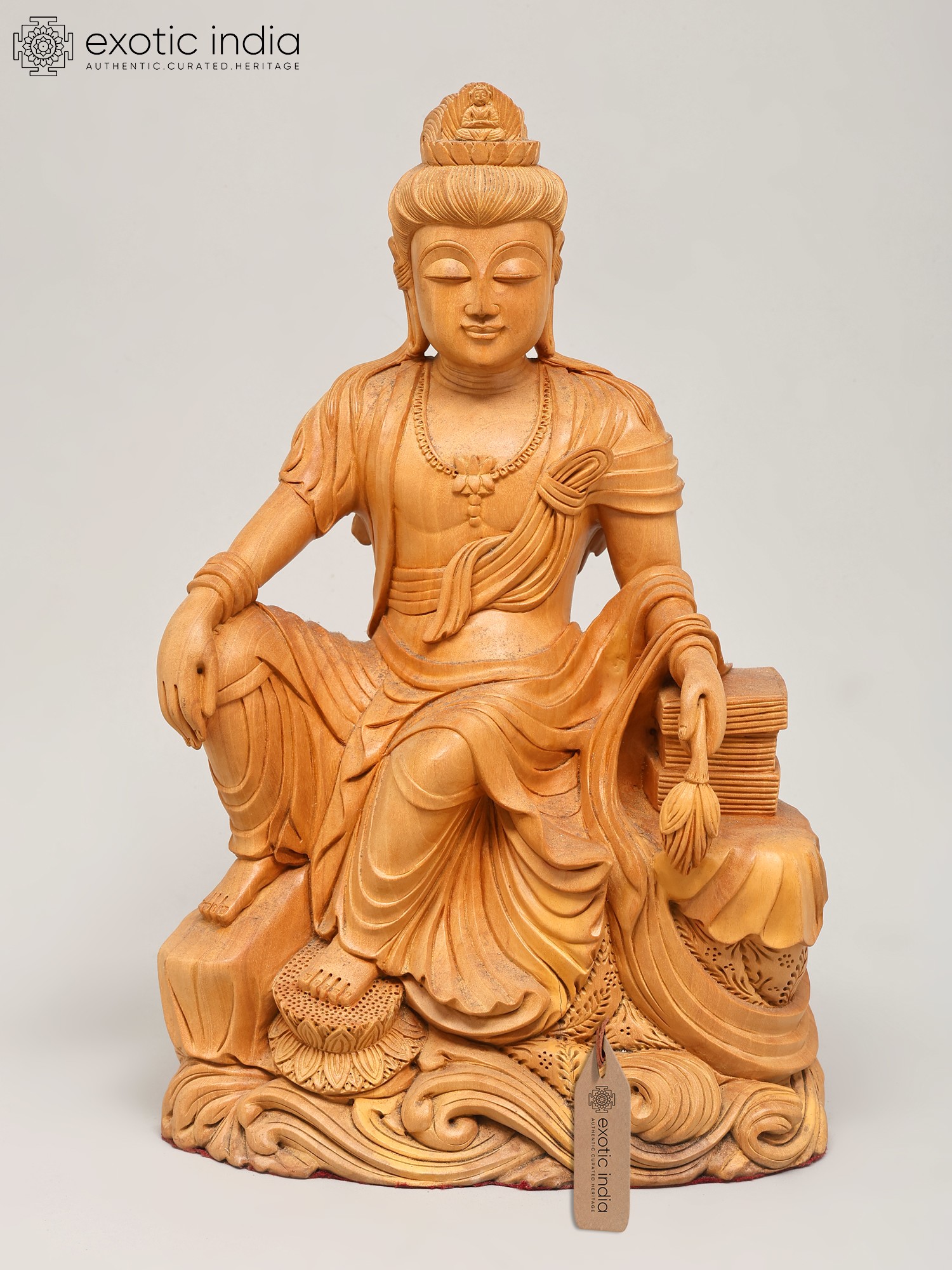 24" Meditating Lord Buddha Seated on Throne | Wood Carving