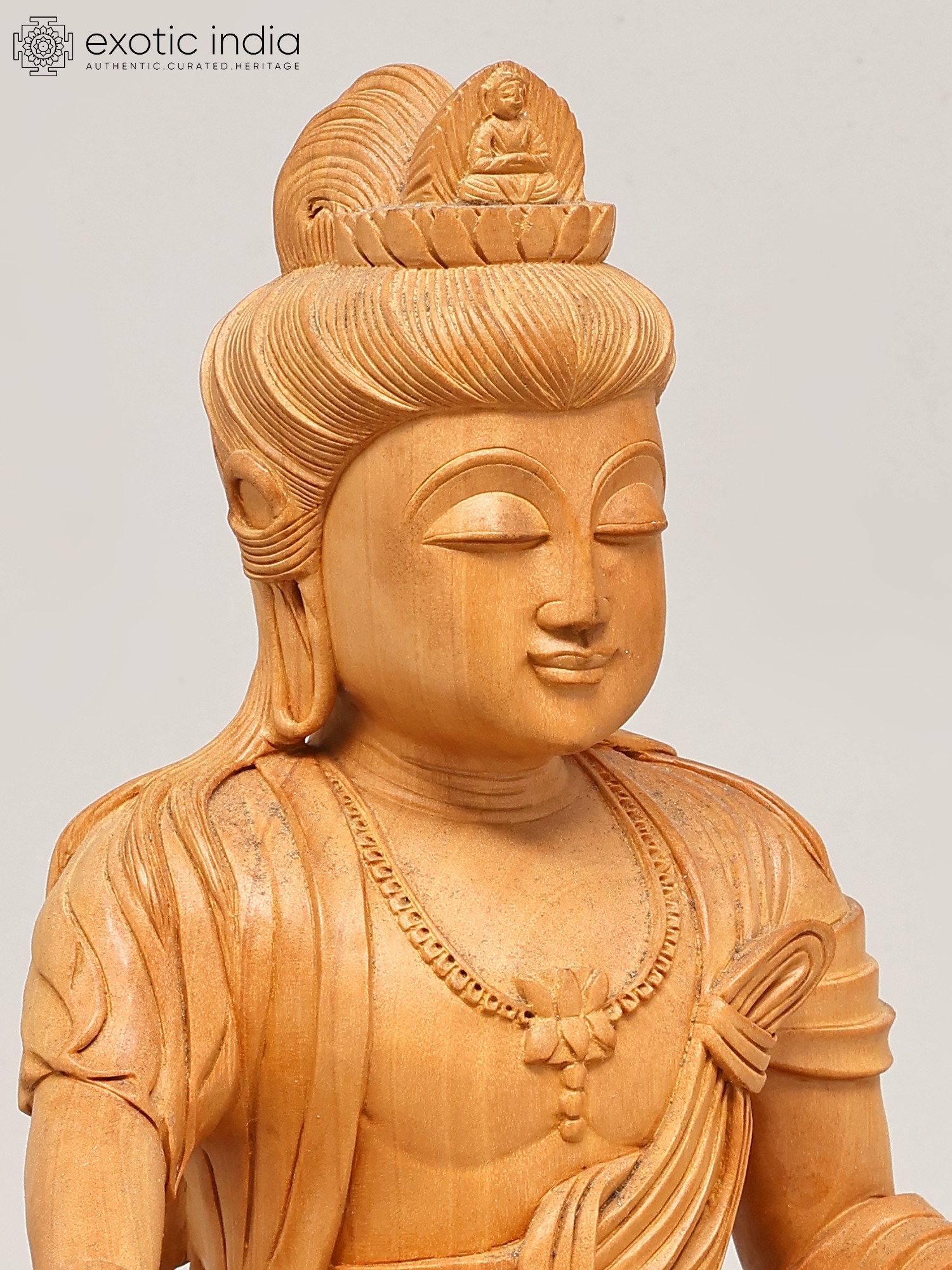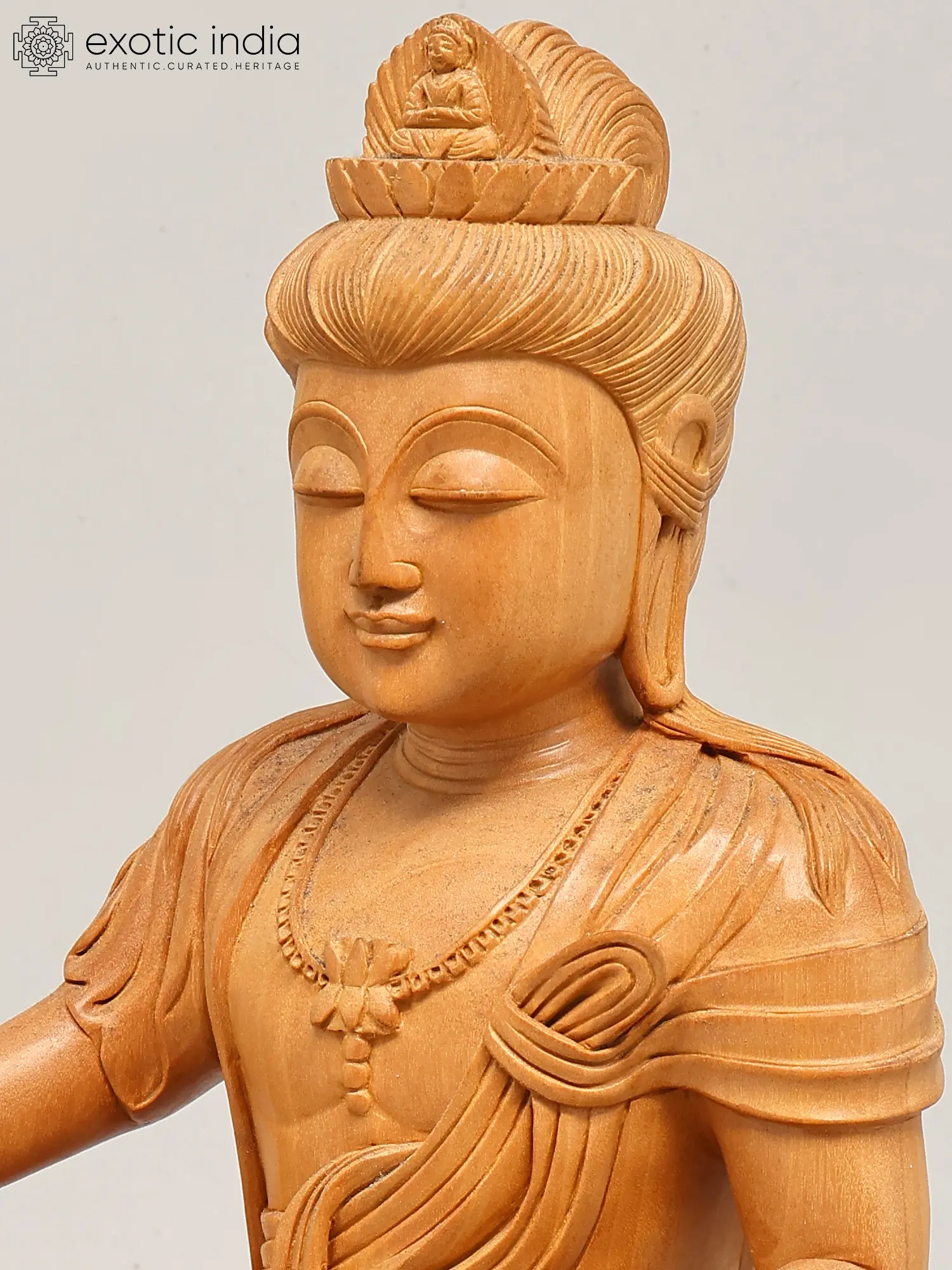 18" Lord Buddha Standing in Varada Mudra on Lotus Pedestal | Wood Carved Statue