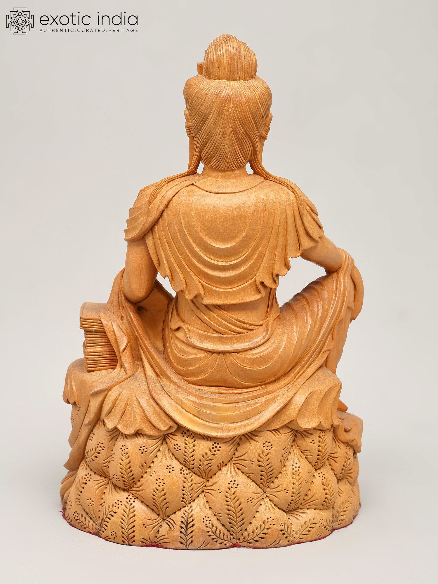 18" Standing Lord Buddha in Vitark Mudra on Lotus Pedestal | Wood Carved Statue