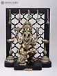 Chaturbhuja Ganesha Brass Statue: 8" Seated on Throne with Mushaka