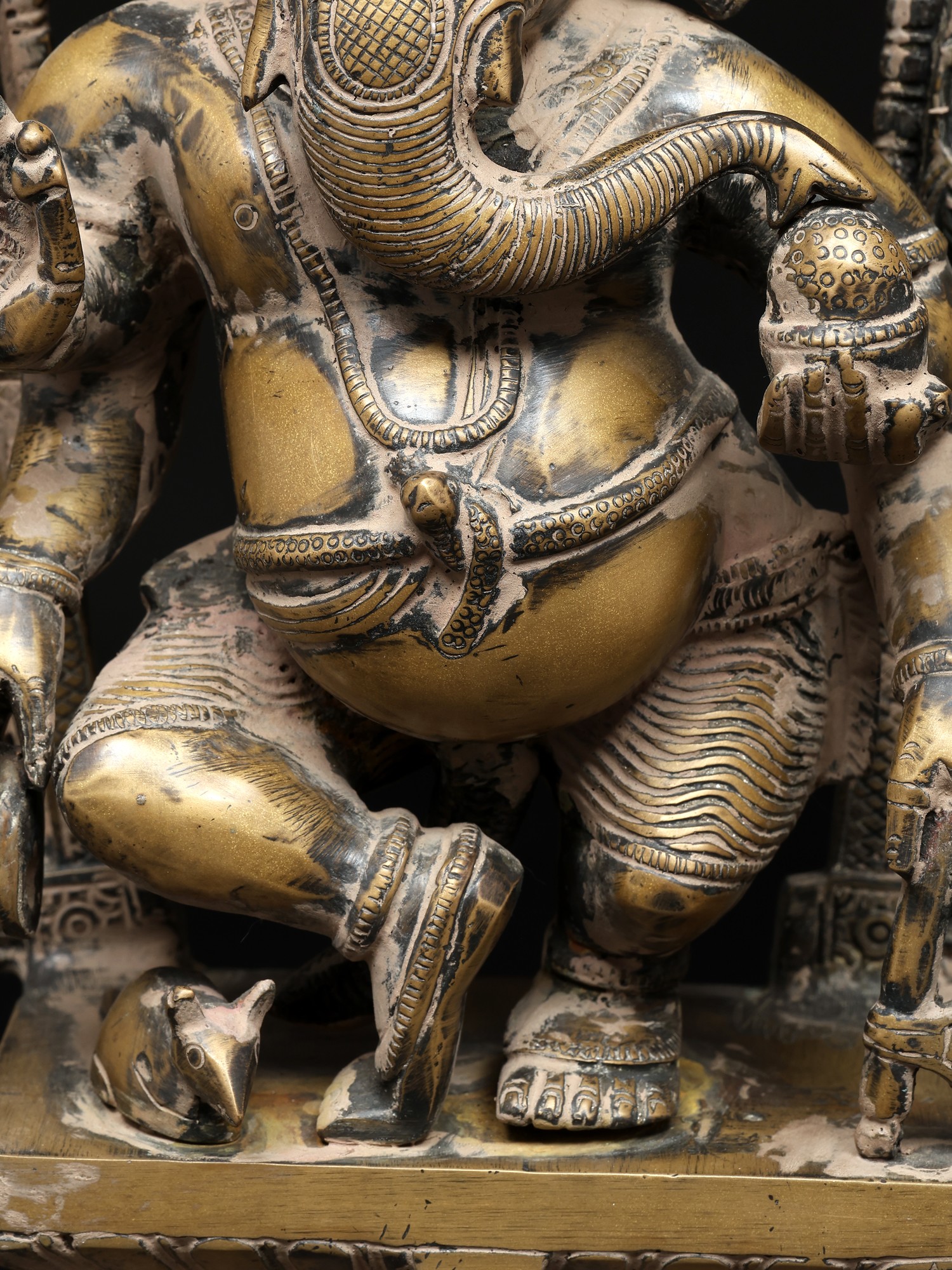 10" Dancing Ganesha Hanging Lamp with Bells In Brass | Handmade | Made In India