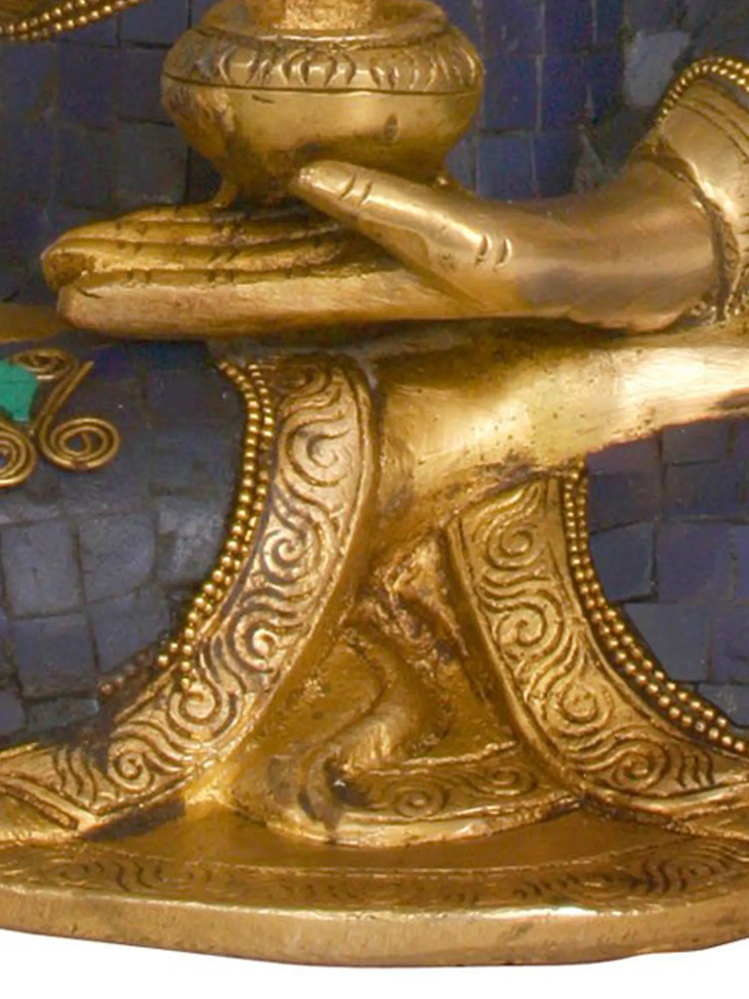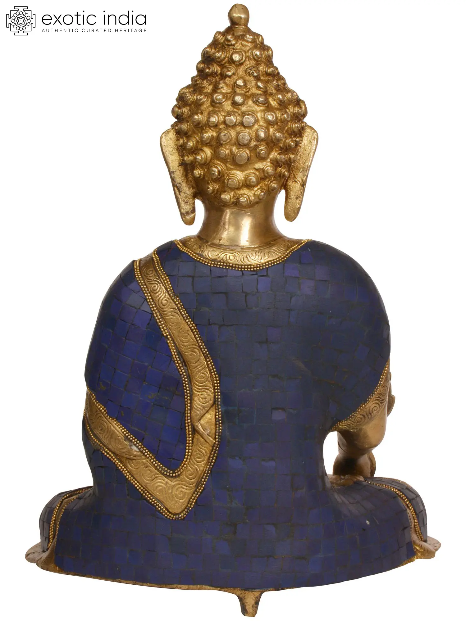 14" Lapis Healing Buddha (Inlay Tibetan Buddhist Statue) In Brass | Handmade | Made In India
