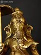 The statue is crafted of the highest-grade brass. He is shown in a walking position. His body is ornamented with simple carvings, and he stands on an auspicious lotus pedestal. This statue is an eternal reflection of religious symbolism and Lord Ganesha's grace, and it will remain with the beholder as a monument to Indian craftsmanship for future generations.